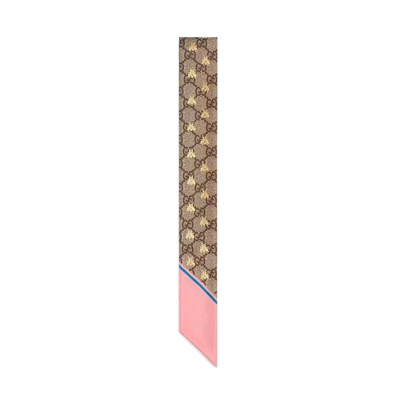 구찌 꿀벌 트윌리 실크 방도반다나 스카프 핑크 663716.
