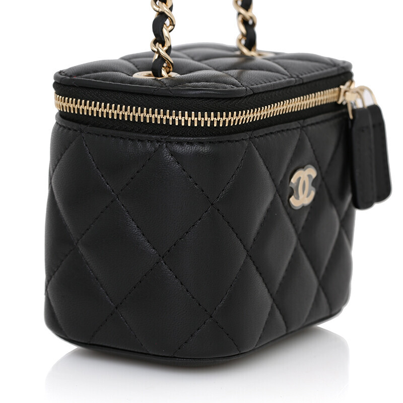 샤넬 클래식 램스킨 베니티 블랙 금장 CC 로고 체인크로스 미니백 체인백.