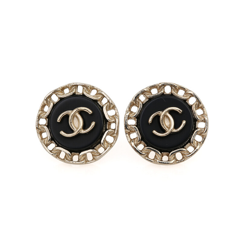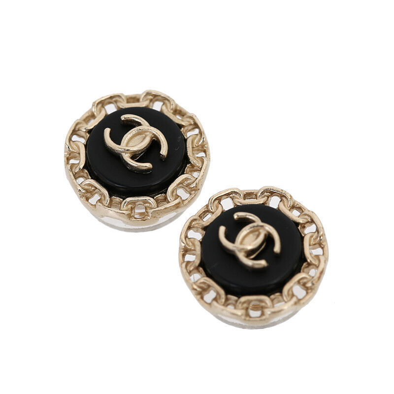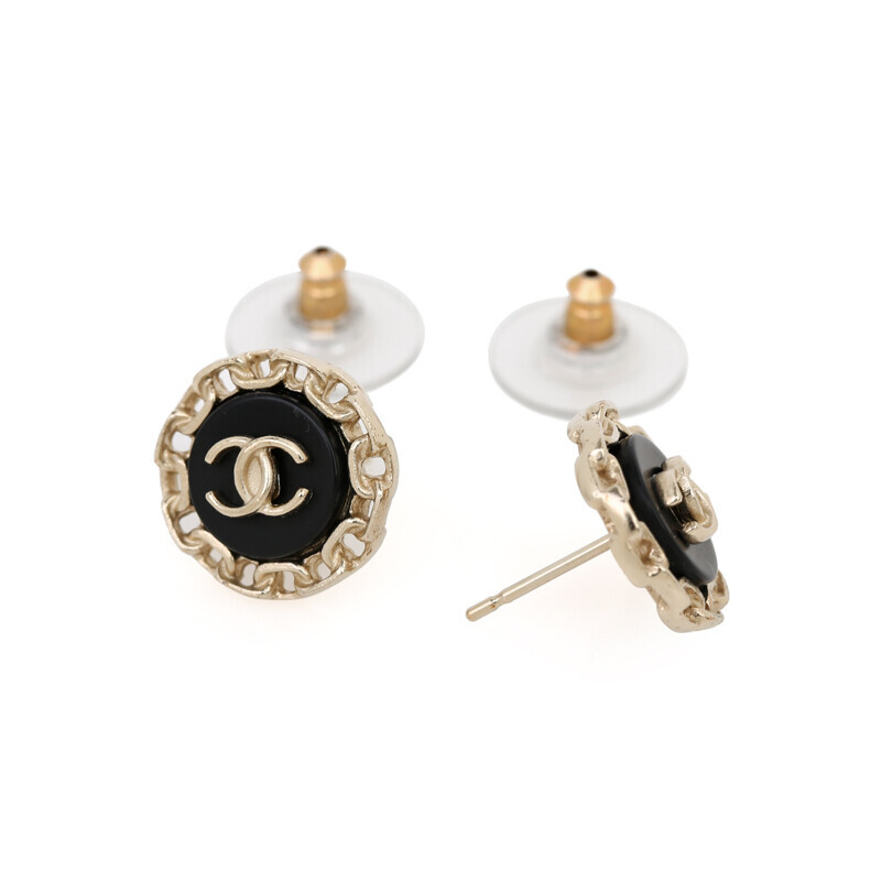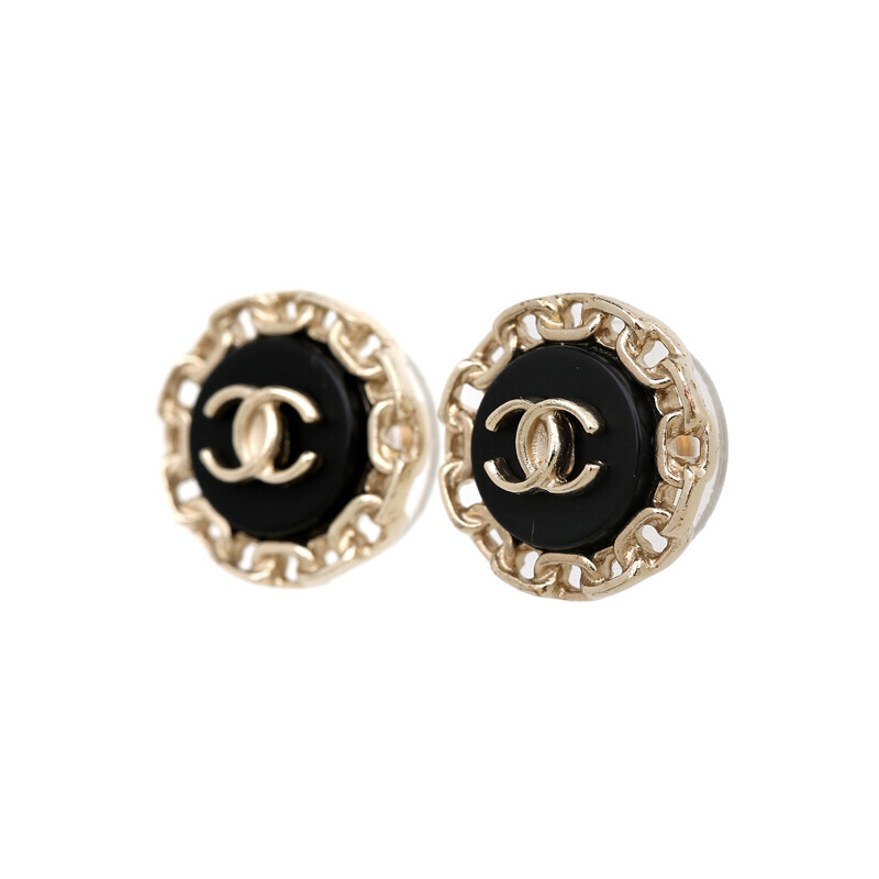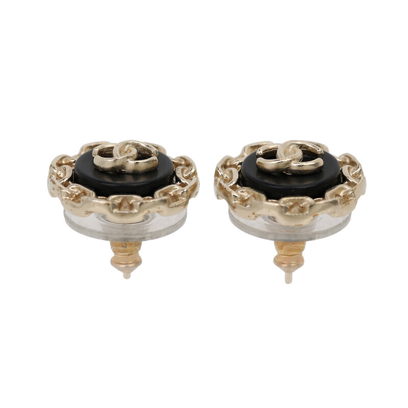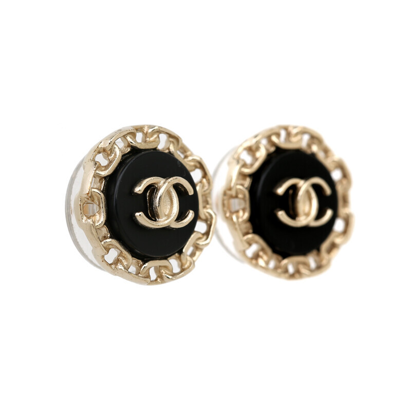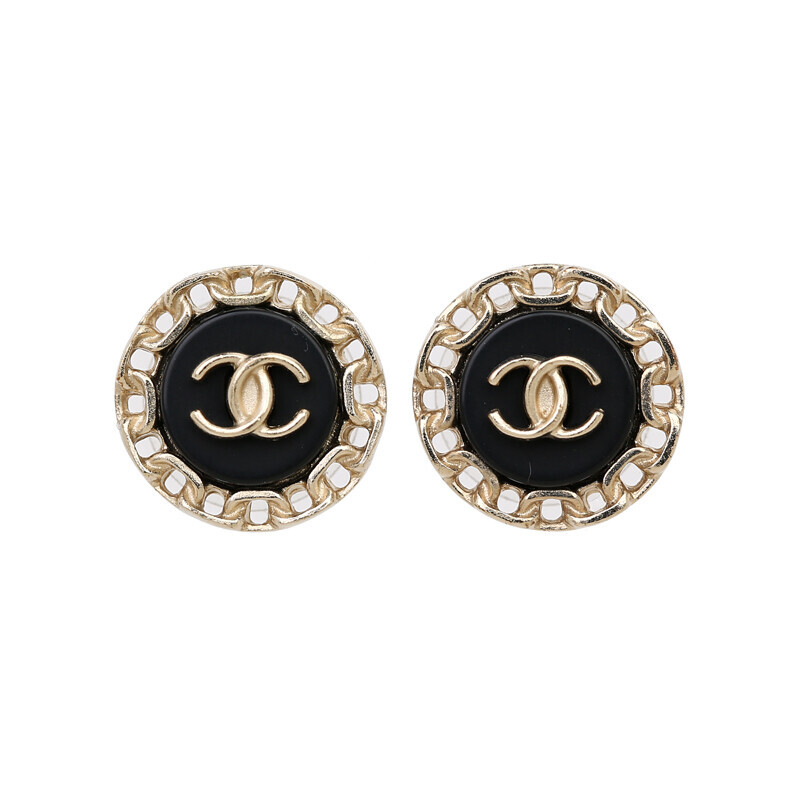샤넬 2018 한정 코코마크 CC 로고 귀걸이 이어링 블랙 골드.