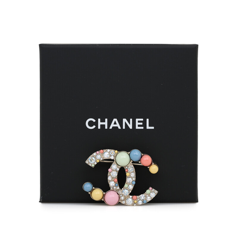 샤넬 파스텔 CC 로고 브로치 골드브롯치