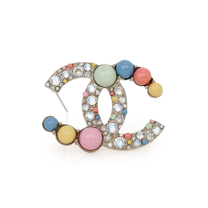 샤넬 파스텔 CC 로고 브로치 골드브롯치