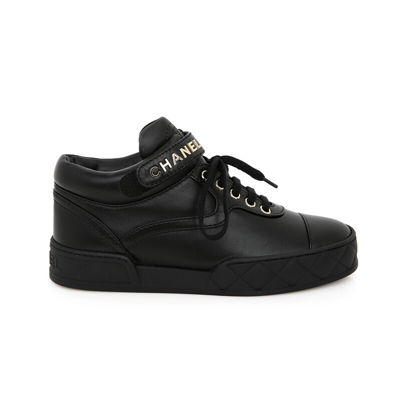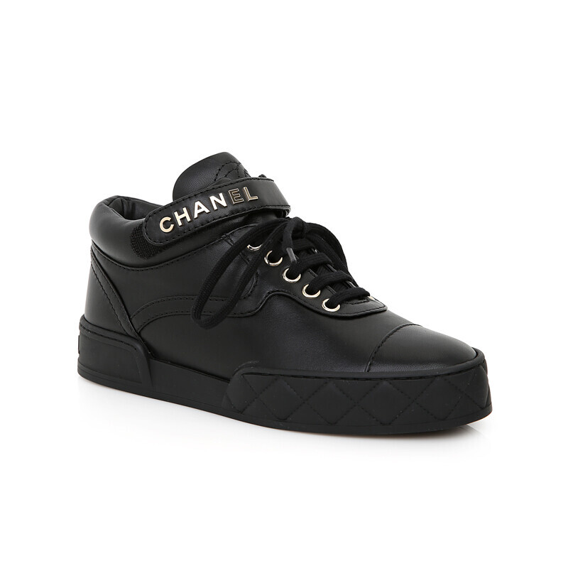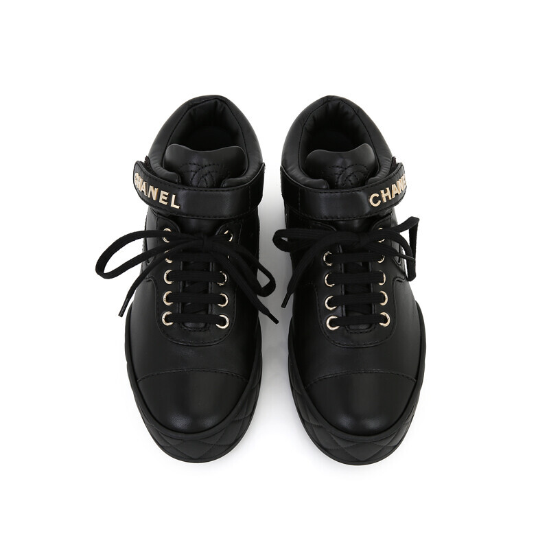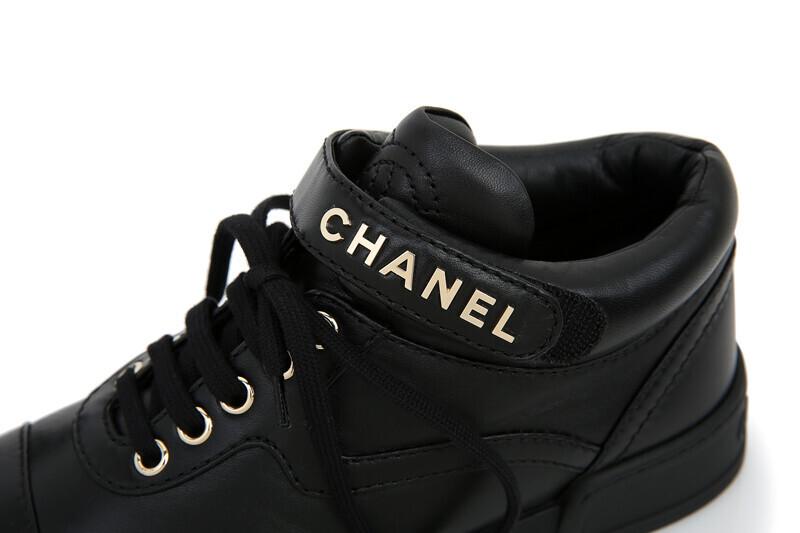 샤넬 클래식 램스킨 하이탑 블랙 금장 트레이너 스니커즈 G34967.