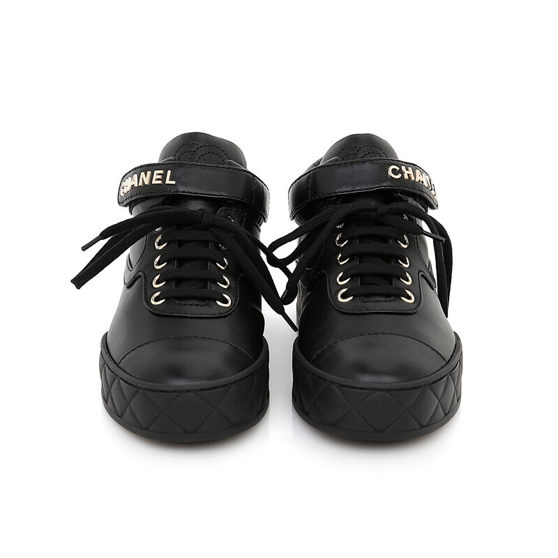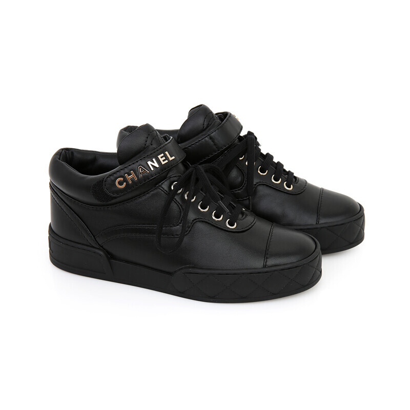 샤넬 클래식 램스킨 하이탑 블랙 금장 트레이너 스니커즈 G34967.