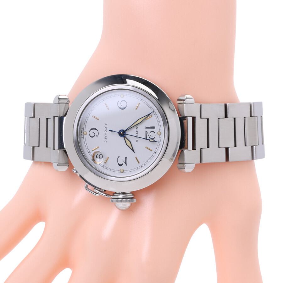 까르띠에 파샤 데이트 2324 화이트 스틸 은장 워치 시계 흰판
