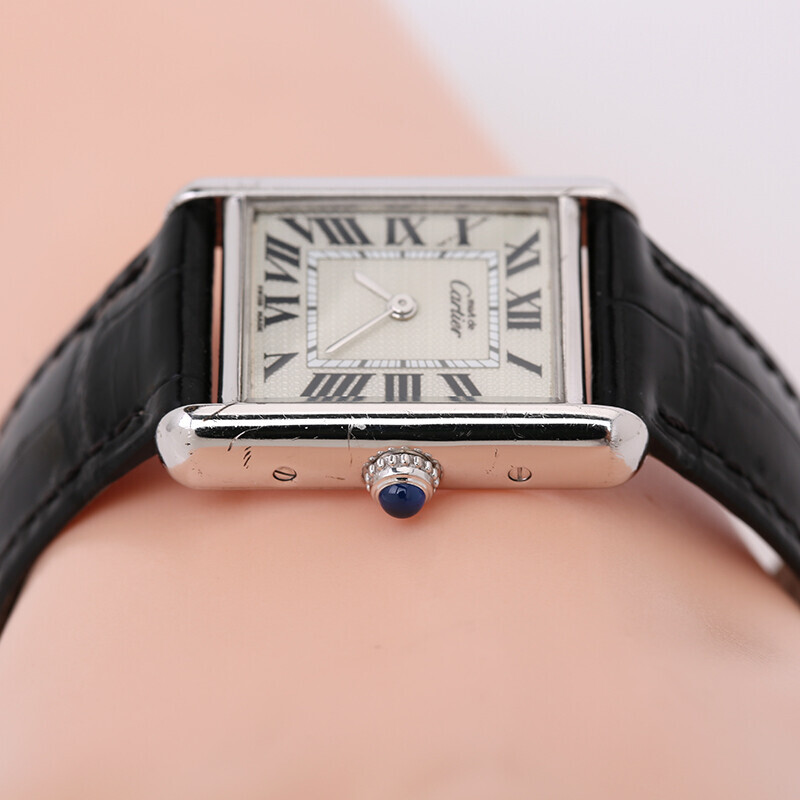 까르띠에 2000년 빈티지 머스트 탱크 실버 백금 2416 워치 시계.