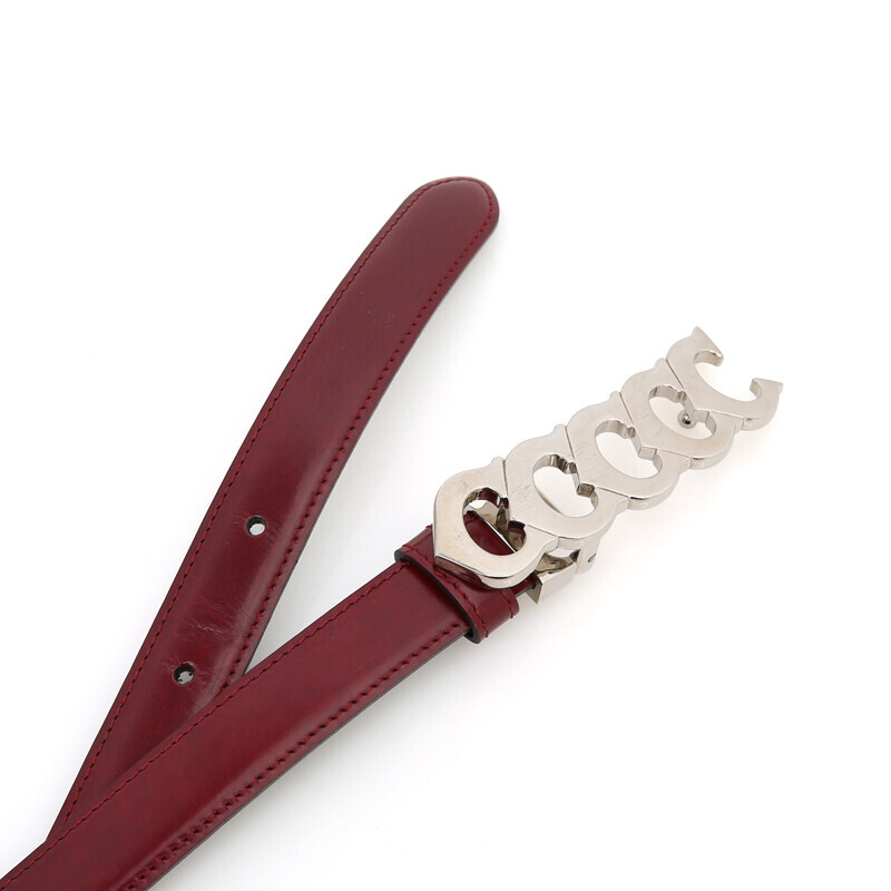 까르띠에 머스트 드 C 파샤 벨트 여성벨트 와인 버건디 은장 C버클 벨트.