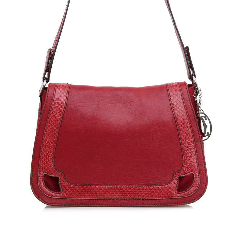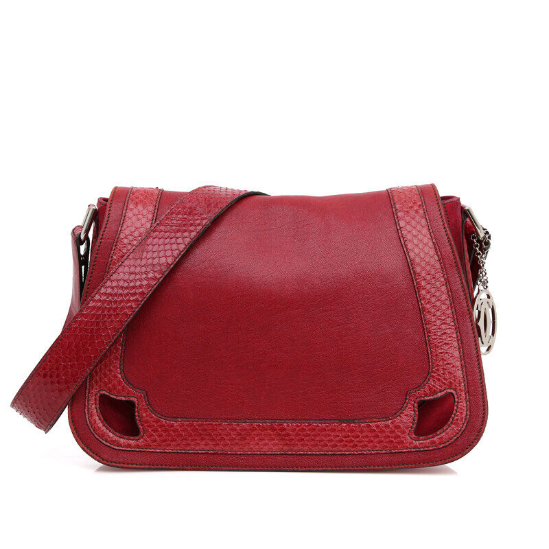 까르띠에 베자스 마르첼 파이톤 와인 버건디 크로스백 숄더 플랩백.