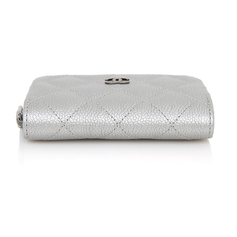 샤넬 캐비어 카드지갑 지퍼지갑 실버 메탈릭
