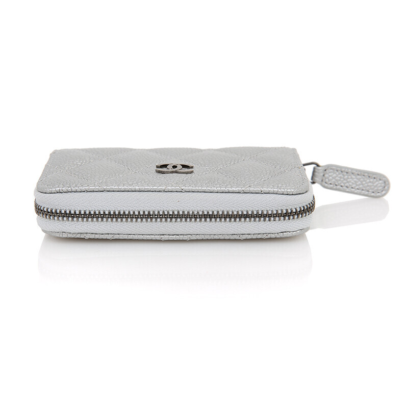 샤넬 실버 메탈릭 캐비어 지갑 명함지갑 카드지갑 지퍼지갑 CC.