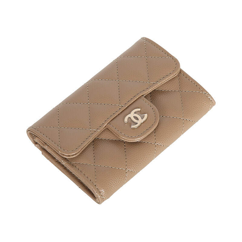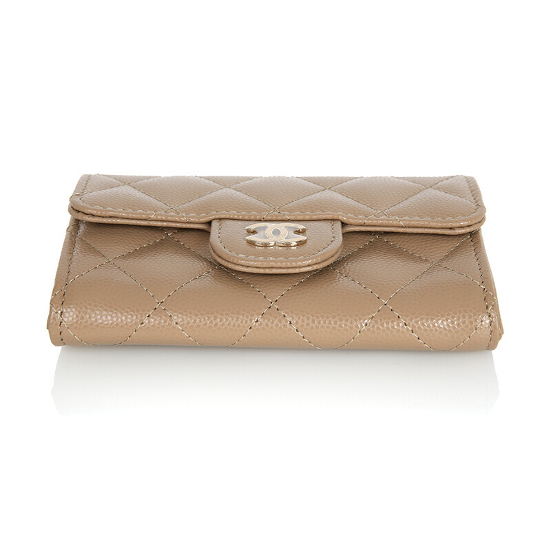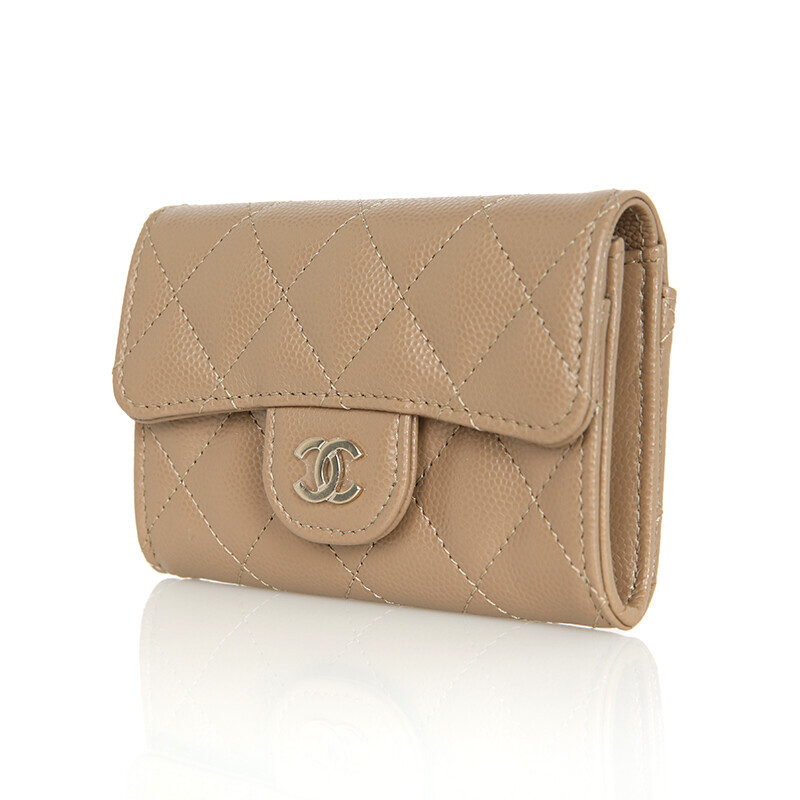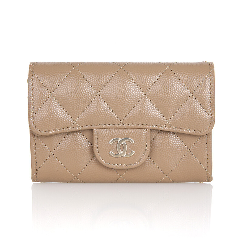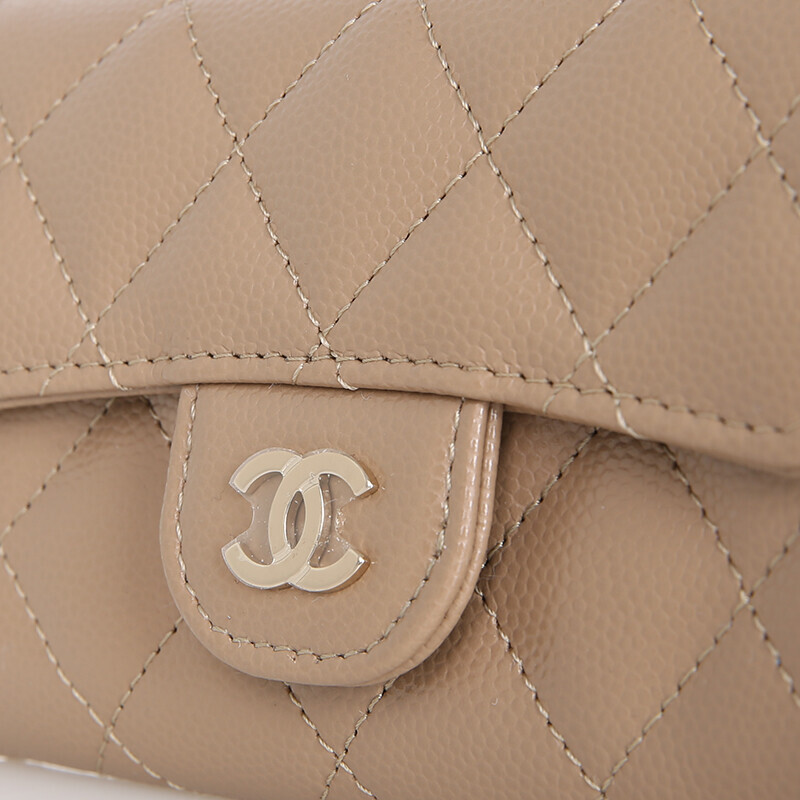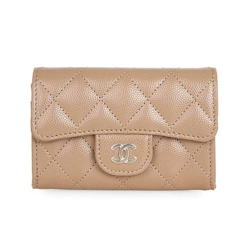 샤넬 클래식 캐비어 카드지갑 플랩 미니지갑 AP0214 베이지 금장.