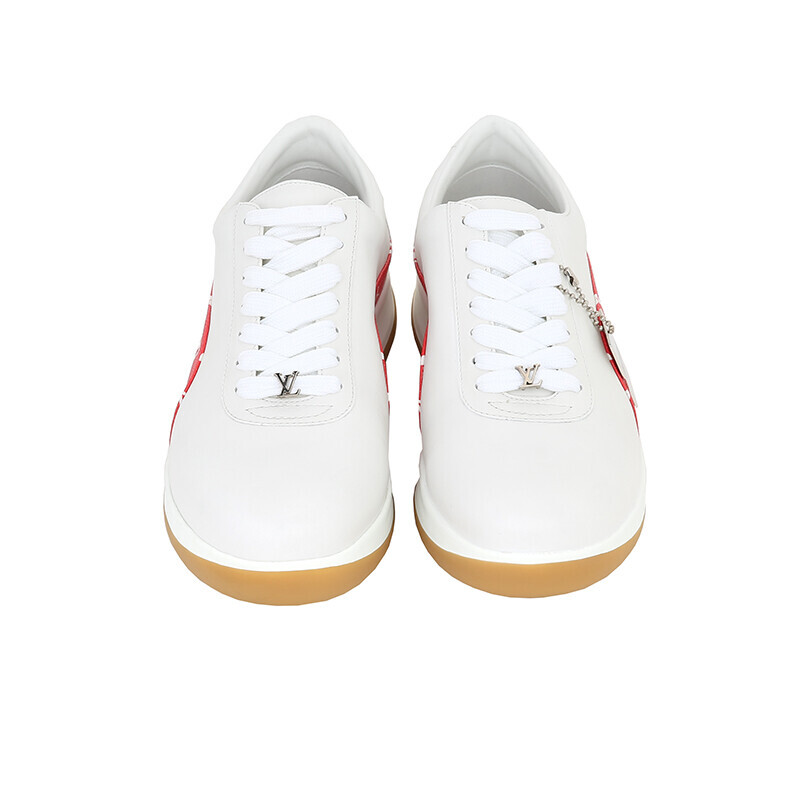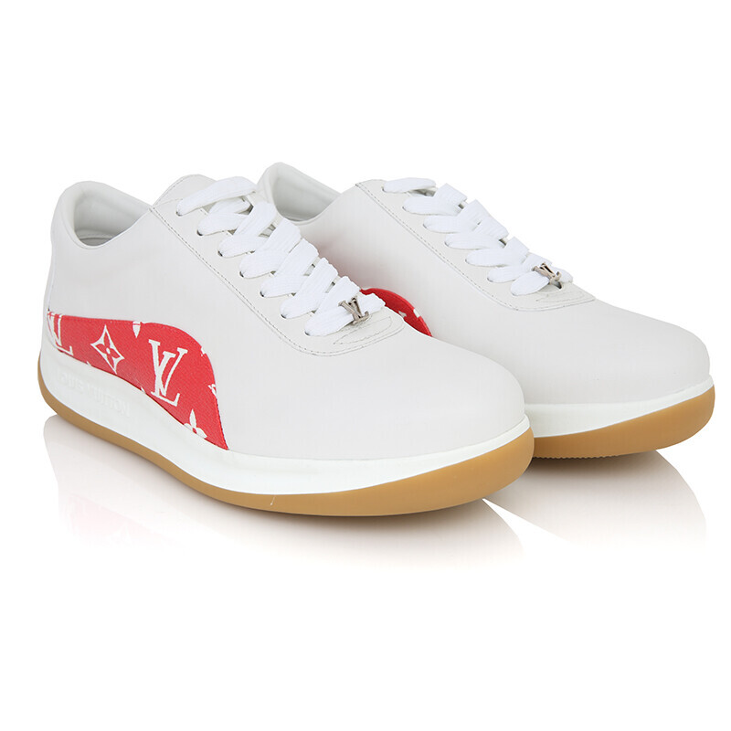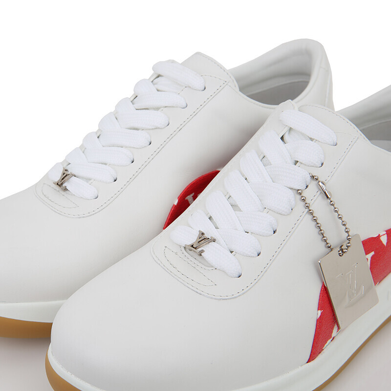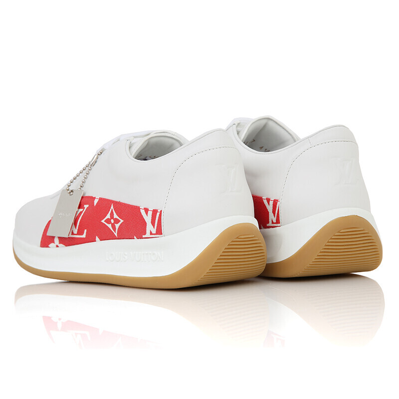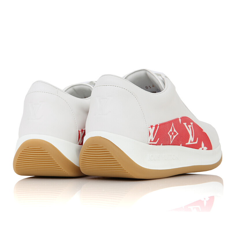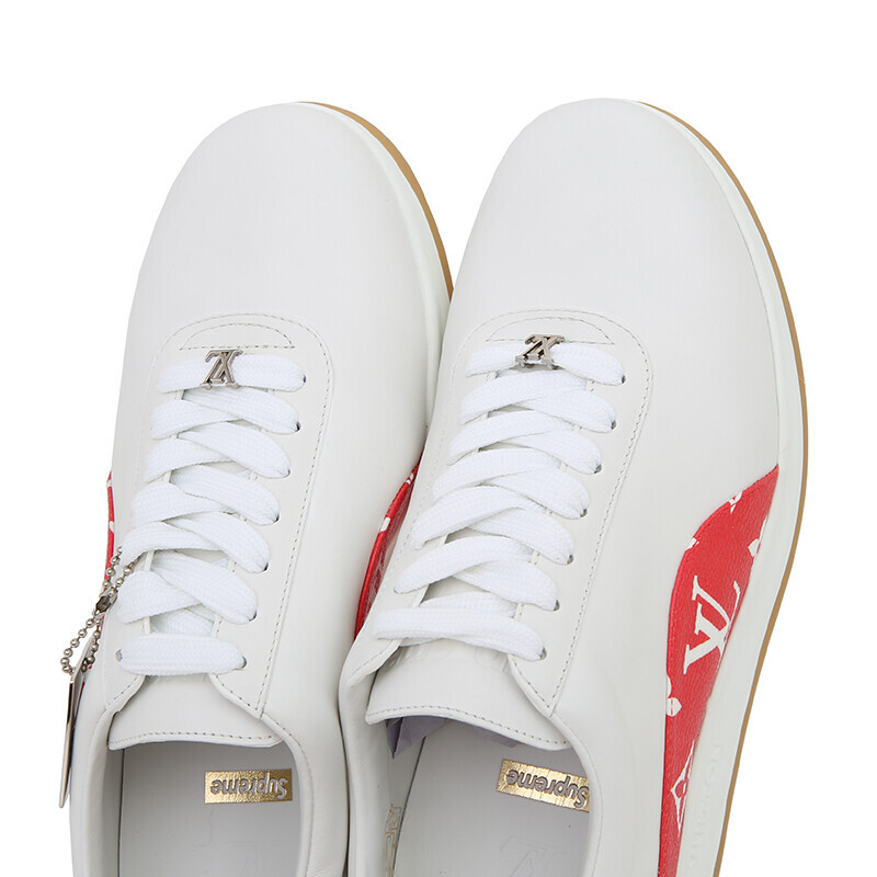 루이비통 X 슈프림 콜라보 한정판 화이트 레드 스니커즈 슈즈 운동화.