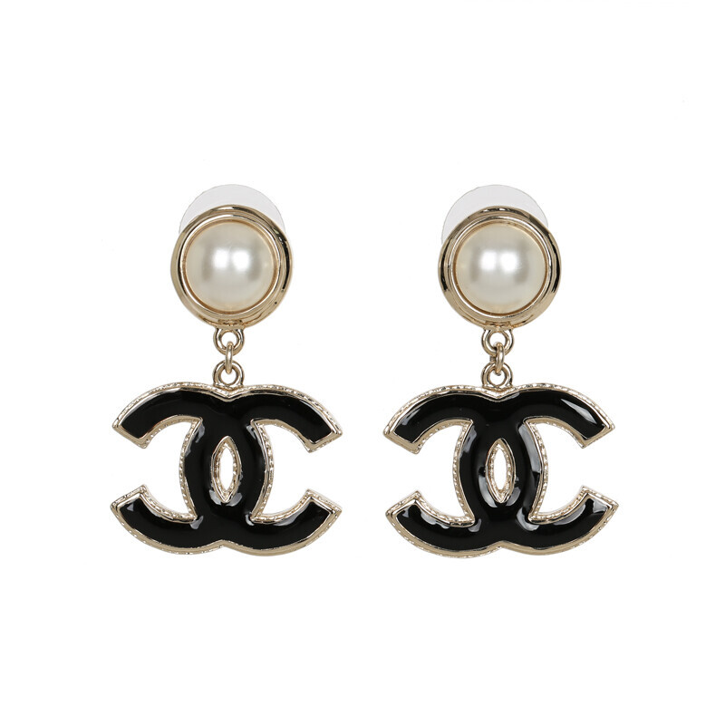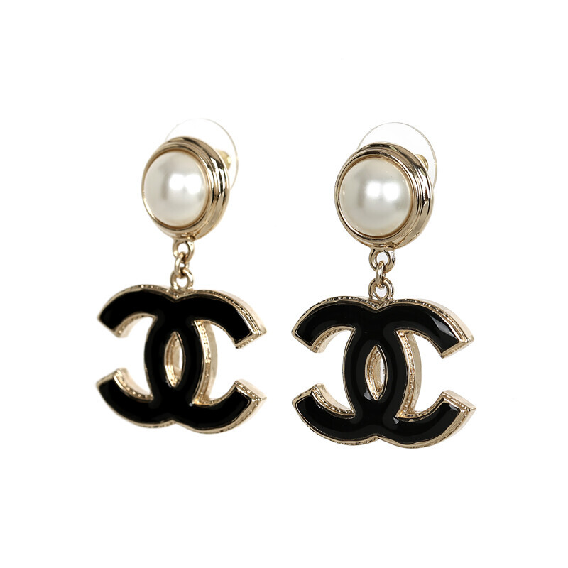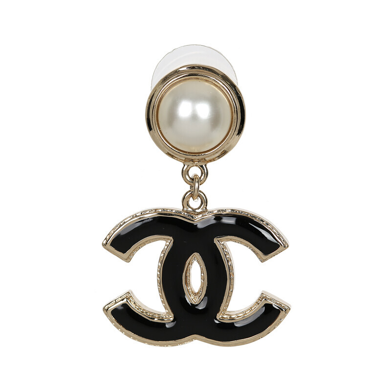 샤넬 2022 블랙 로고 진주 이어링 금장귀걸이