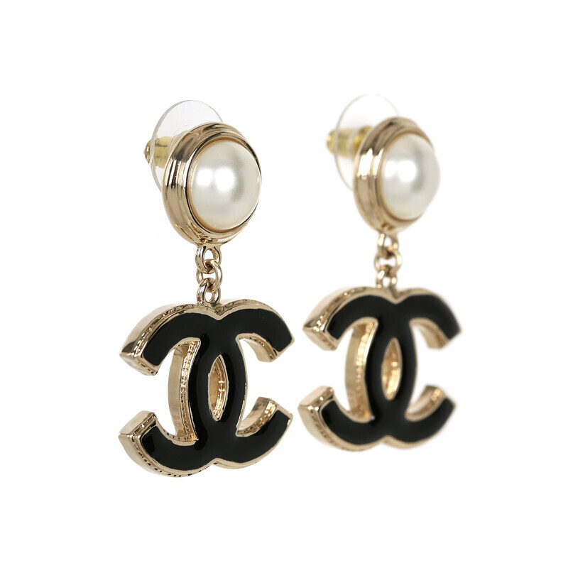 샤넬 2022 쇼라인 CC 블랙 로고 진주 이어링 귀걸이 블랙 금장.