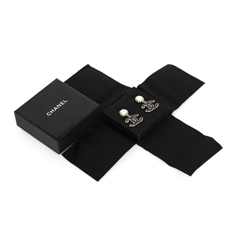 샤넬 2022 쇼라인 CC 블랙 로고 진주 이어링 귀걸이 블랙 금장.
