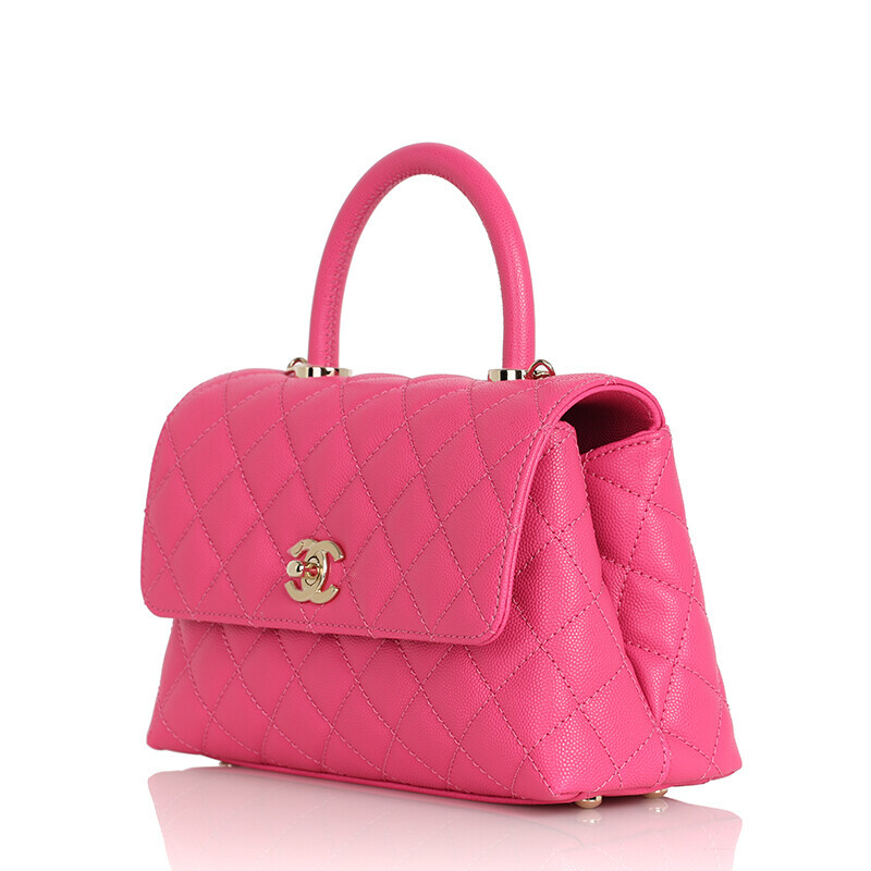 샤넬 캐비어 코코핸들 스몰 핫핑크 금장 코핸