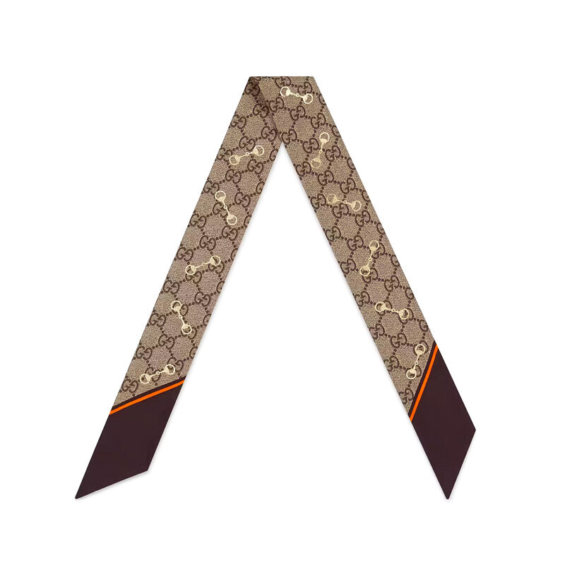 구찌 클래식 스카프 실크 GG 프린트 홀스빗 실크 넥 보우 663719.