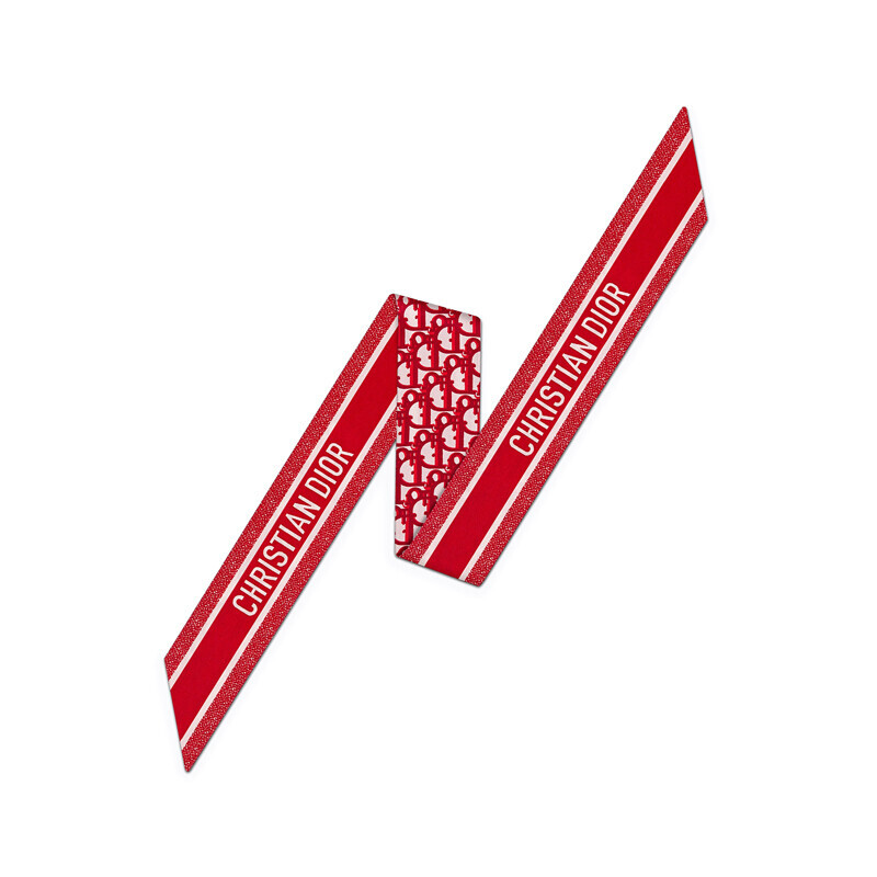 레드 Dior Oblique 모티브로 장식한 미차 스카프입니다.