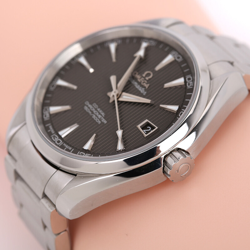 오메가 씨마스터 아쿠아테라 코액시얼 워치 그레이 인덱스 시계.