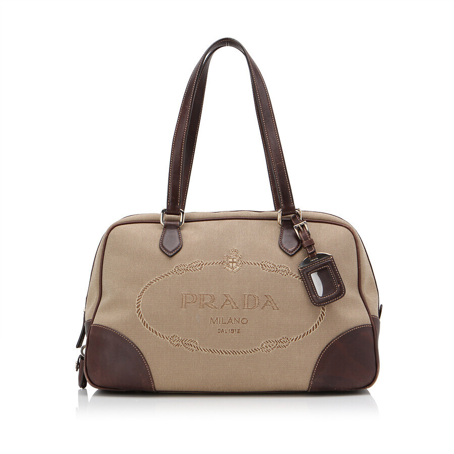 소프트한 쟈가드의 매치에 프라다 로고, 측면에 보이는 은장 자물쇠 장식이