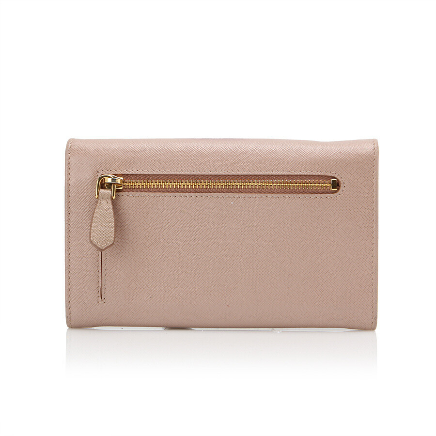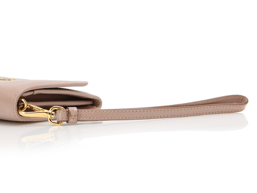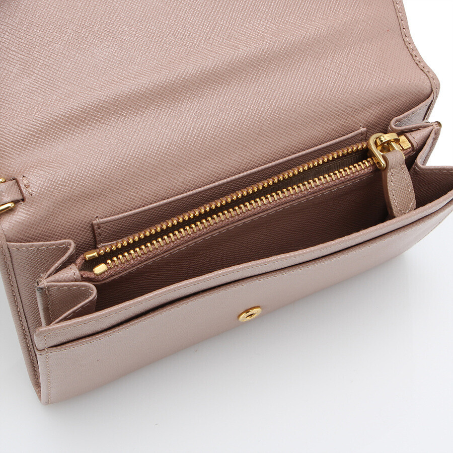 프라다 1M1438 사피아노 메탈 스트랩 중지갑 핑크베이지 포체