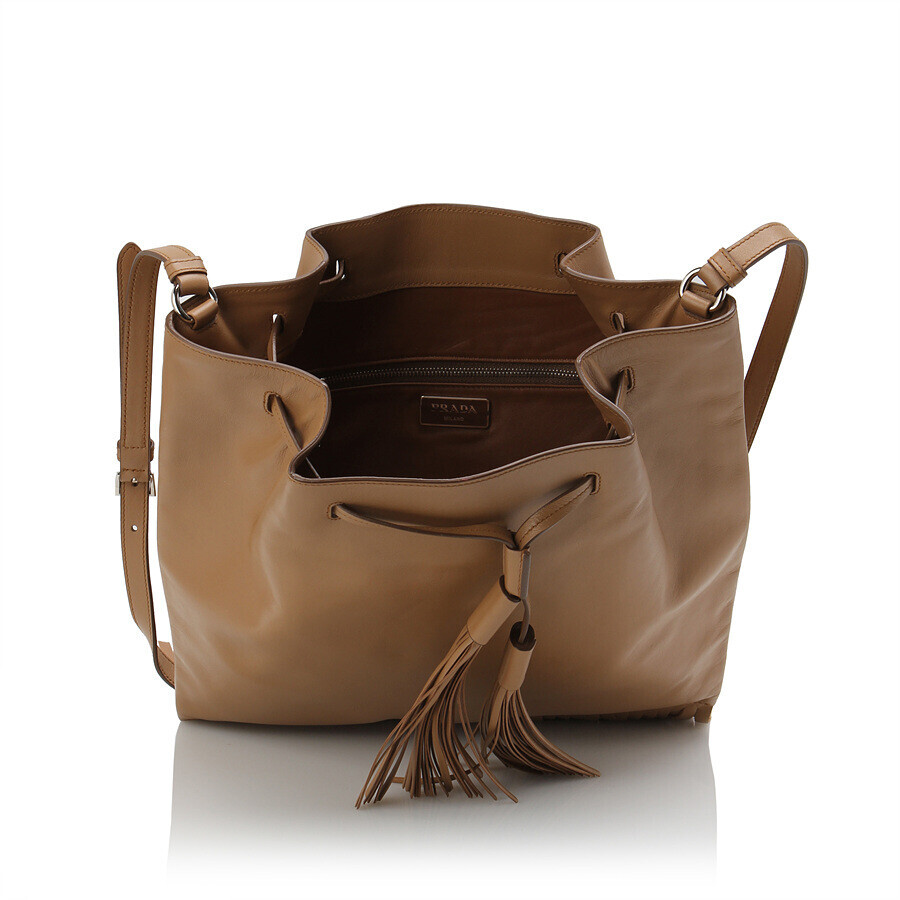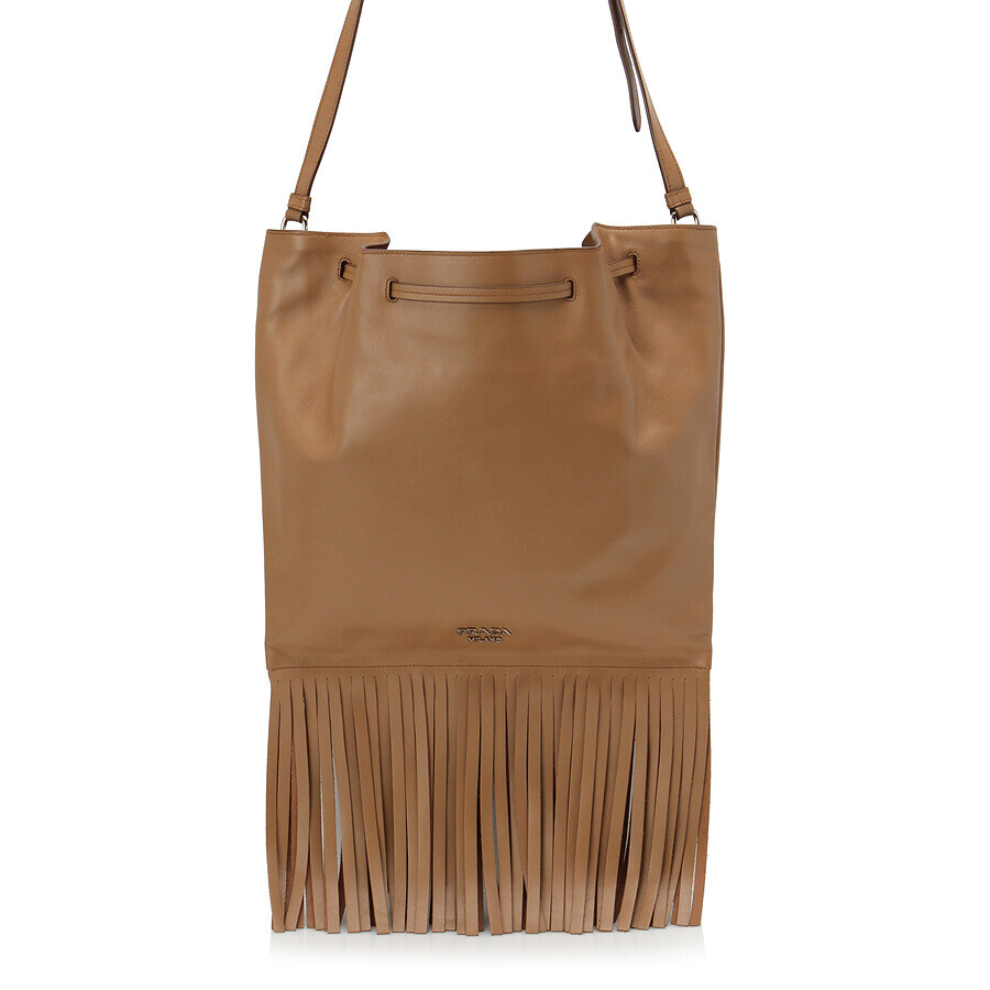 프라다 카라멜 컬러의 프린지 크로스백 입니다