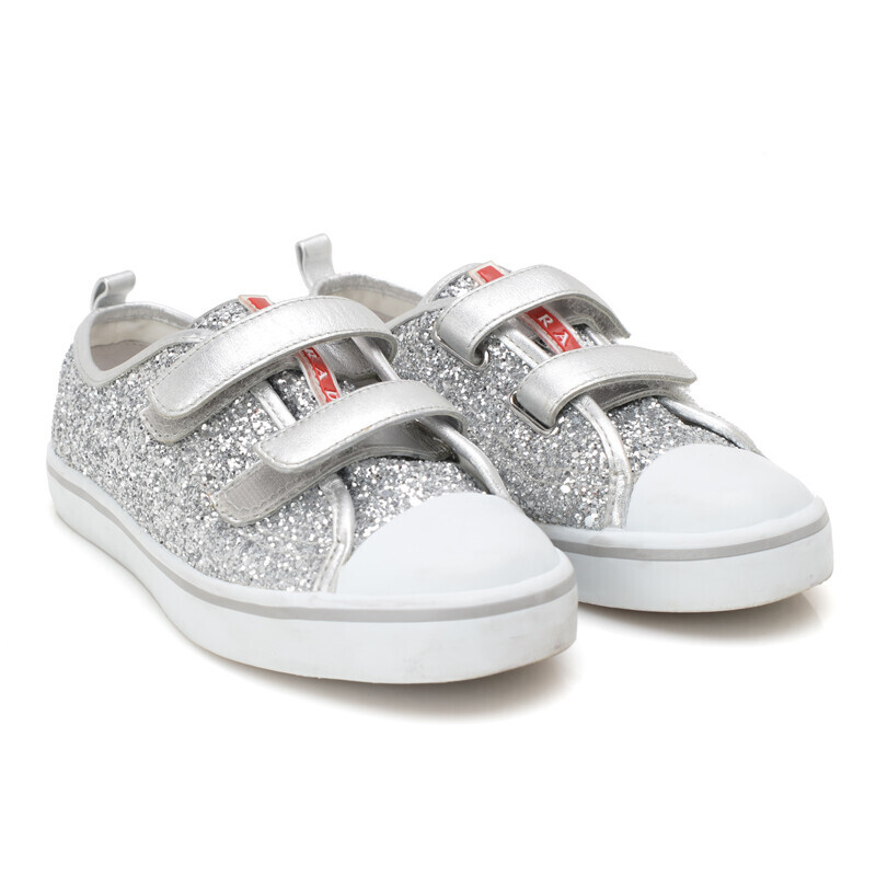 프라다 글리터 벨크로 스니커즈 실버슈즈 0O0663