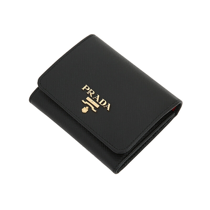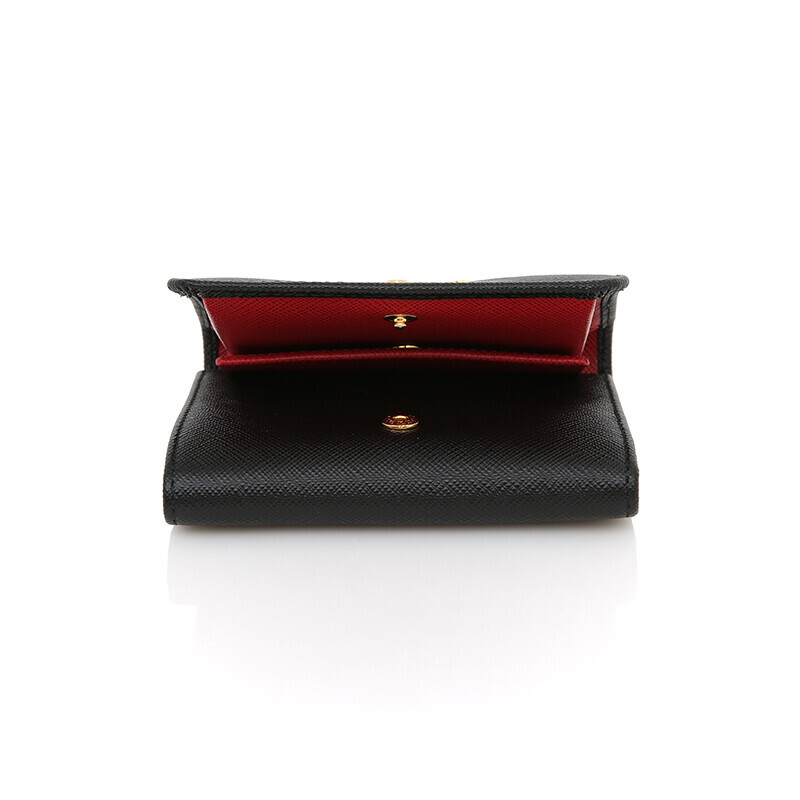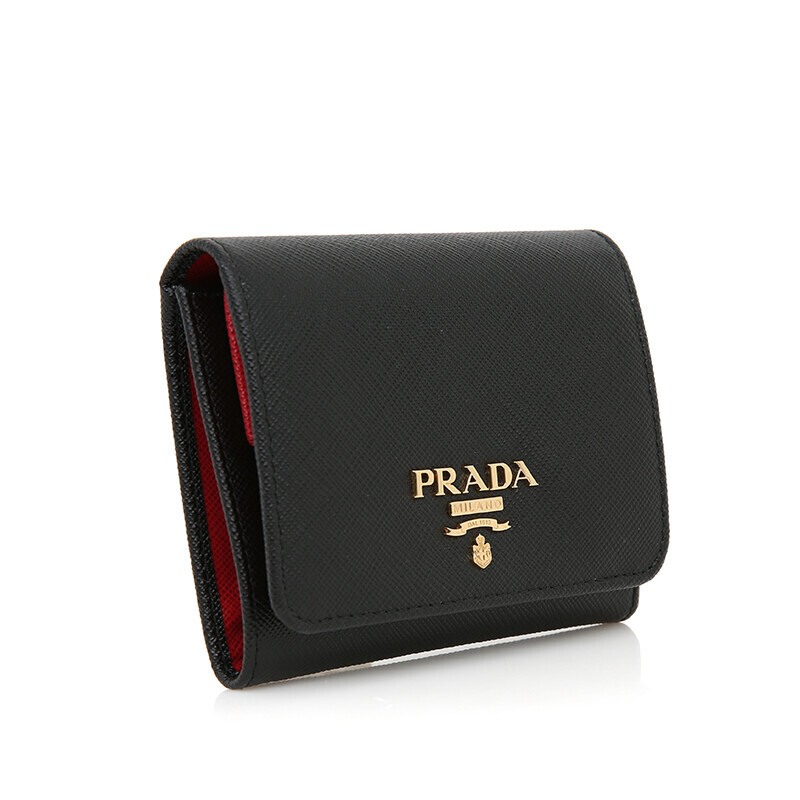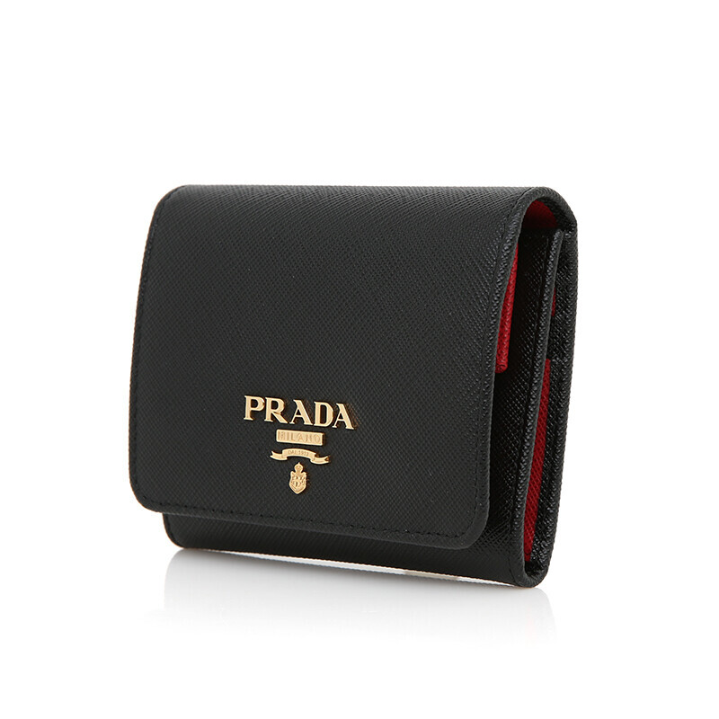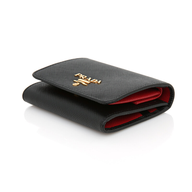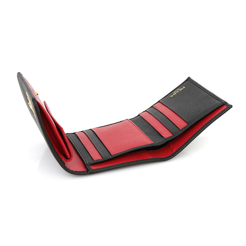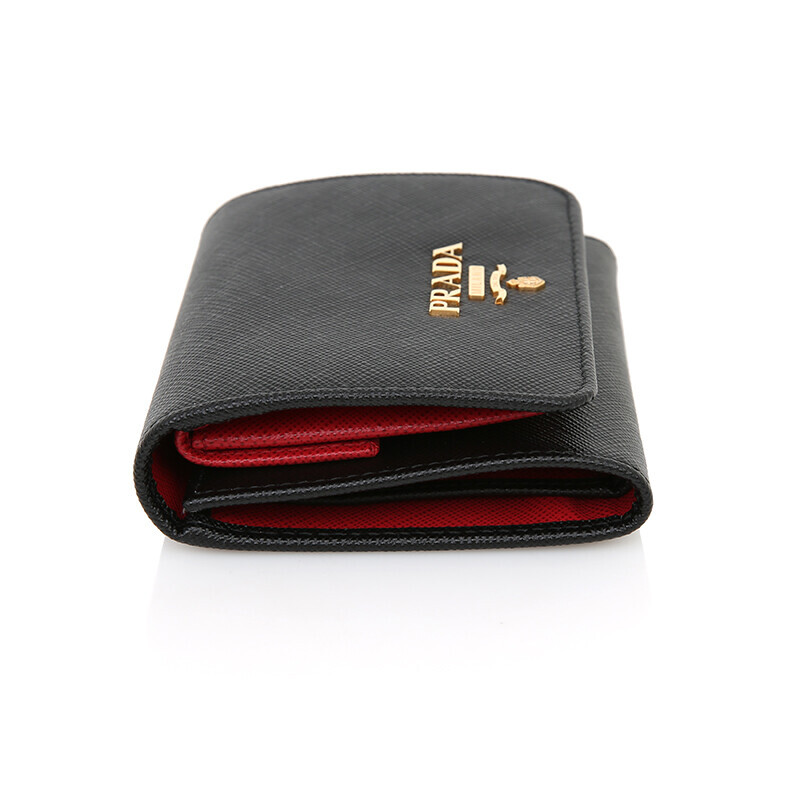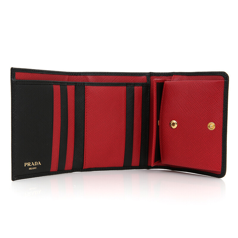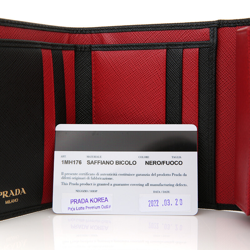 프라다 1MH176 사피아노 투톤 블랙 레드 컴팩트 중지갑 지갑.
