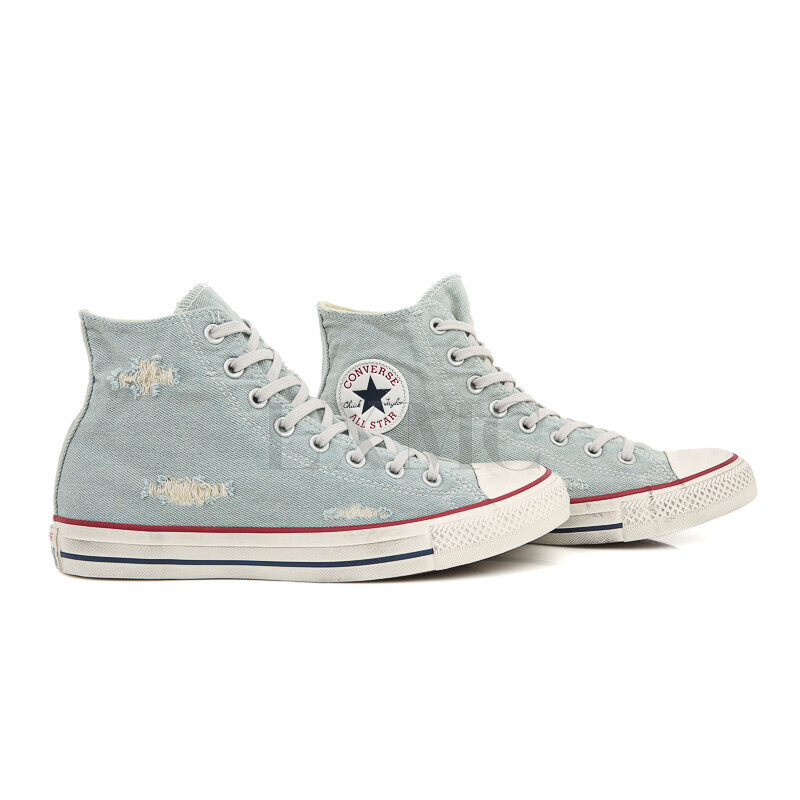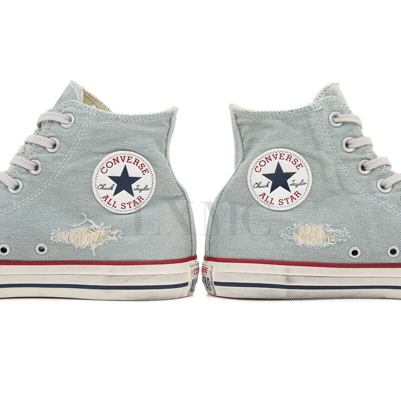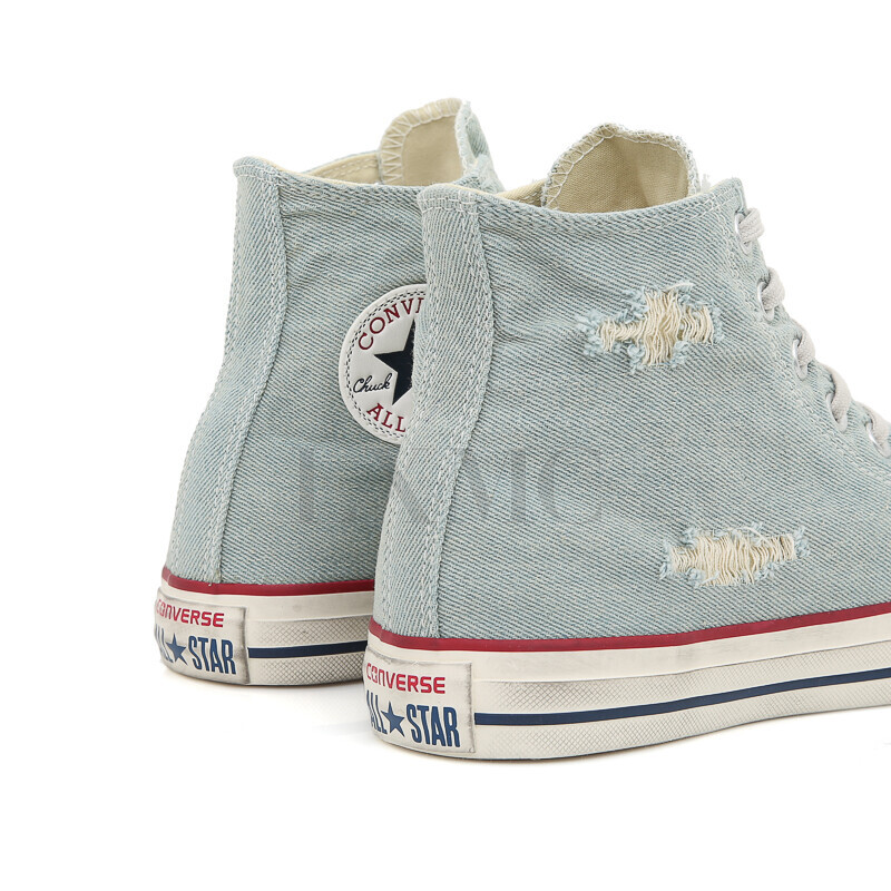 컨버스 척테일러 올스타 데님 워싱 디스트로이 하이탑 스니커즈.