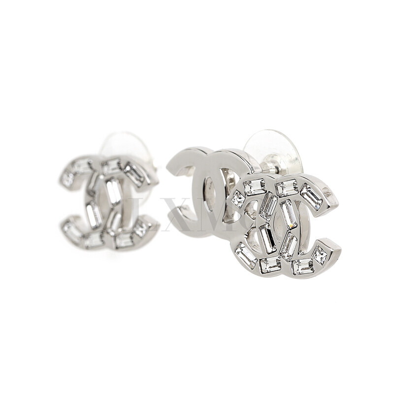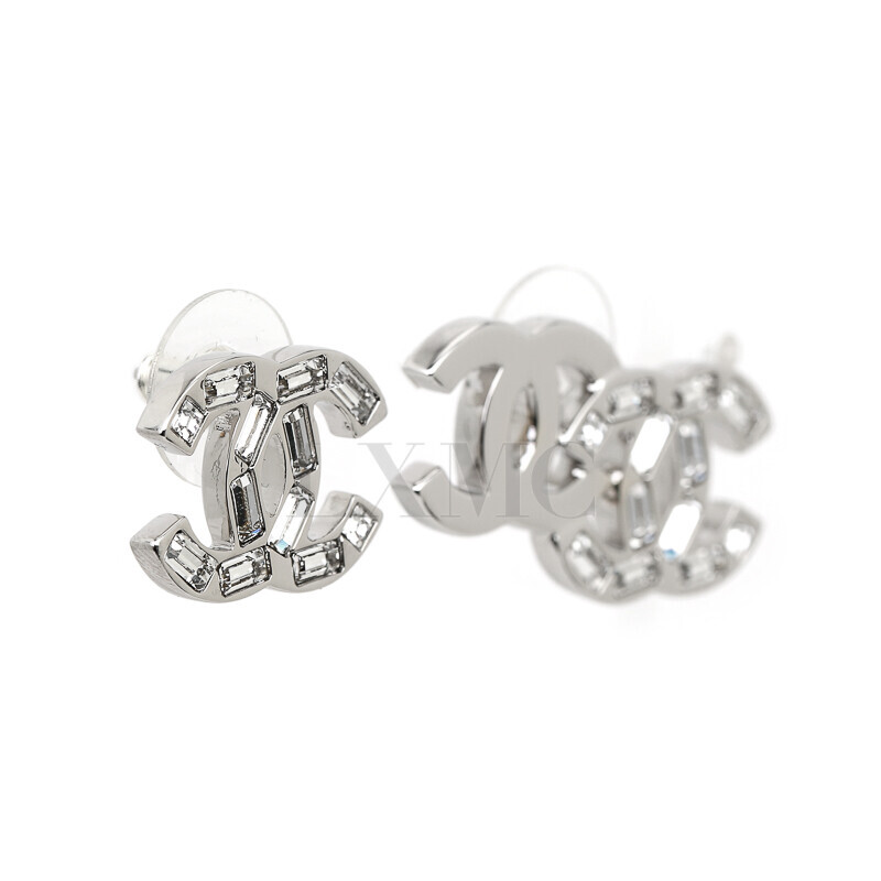 샤넬 메탈 스트라스 언발란스 귀걸이 더블이어링 CC 실버 트윈로고.