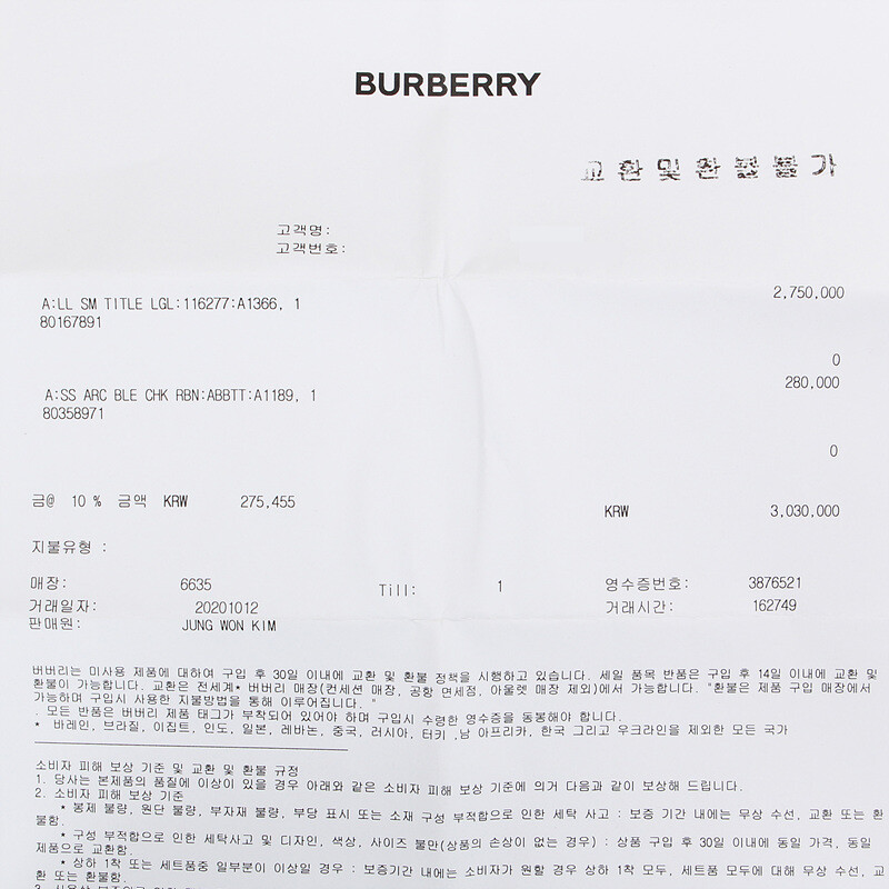 - 구매처 : 2 0 2 0 년 10월 신세계백화점