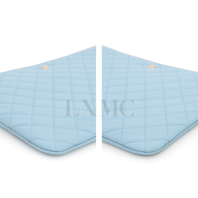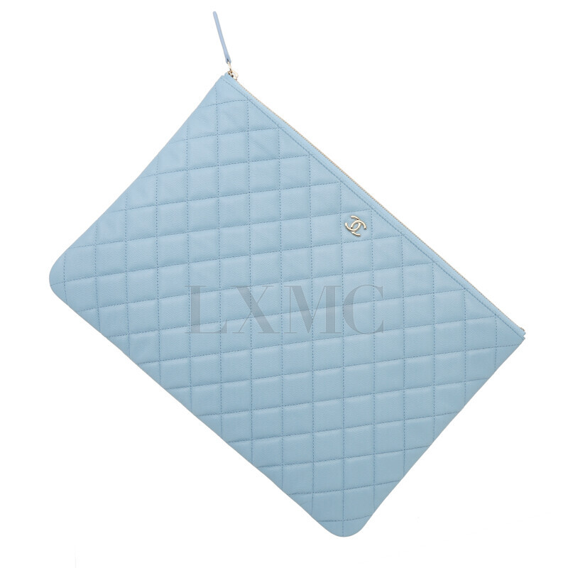 샤넬 캐비어 클러치 라지 지퍼클러치 블루아톨 CC 골드 지퍼파우치.