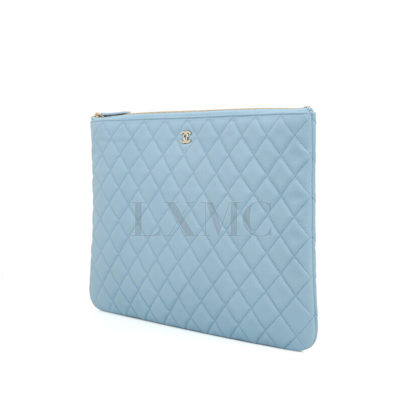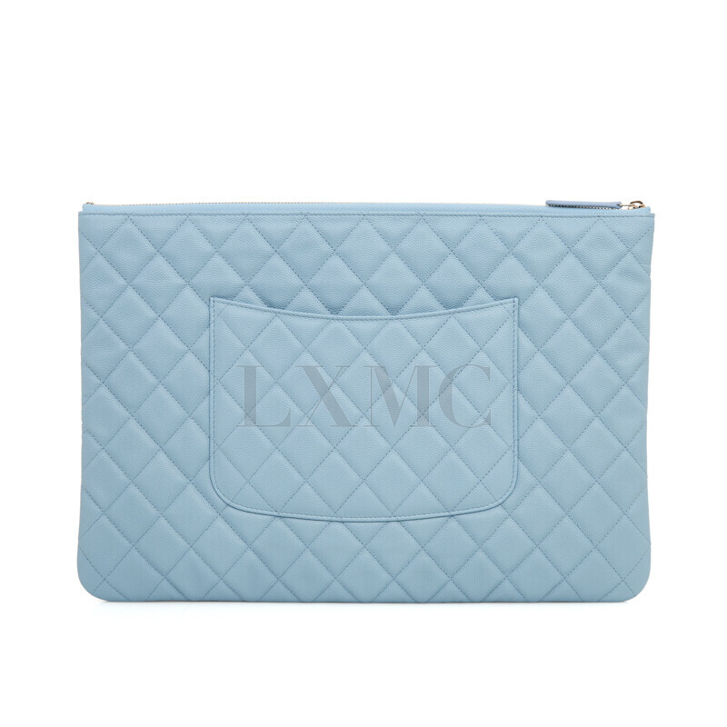 샤넬 캐비어 클러치 라지 지퍼클러치 블루아톨 CC 골드 지퍼파우치.