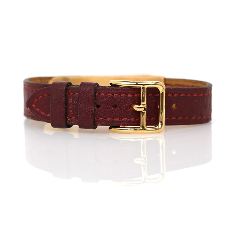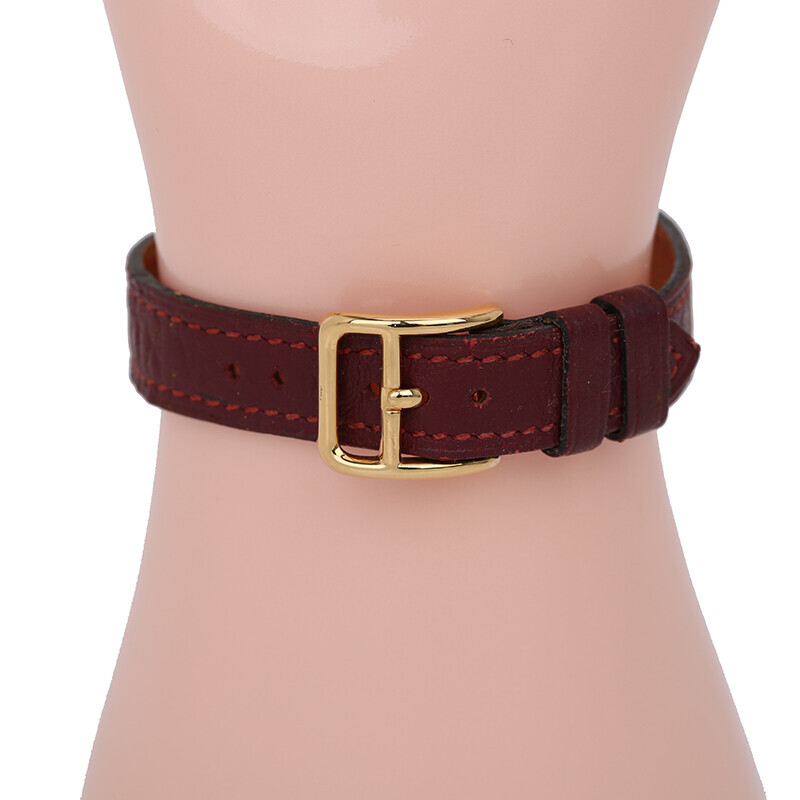 진한 버건디 컬러의 가죽밴드에 골드 켈리워치