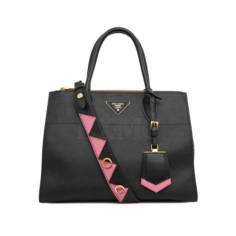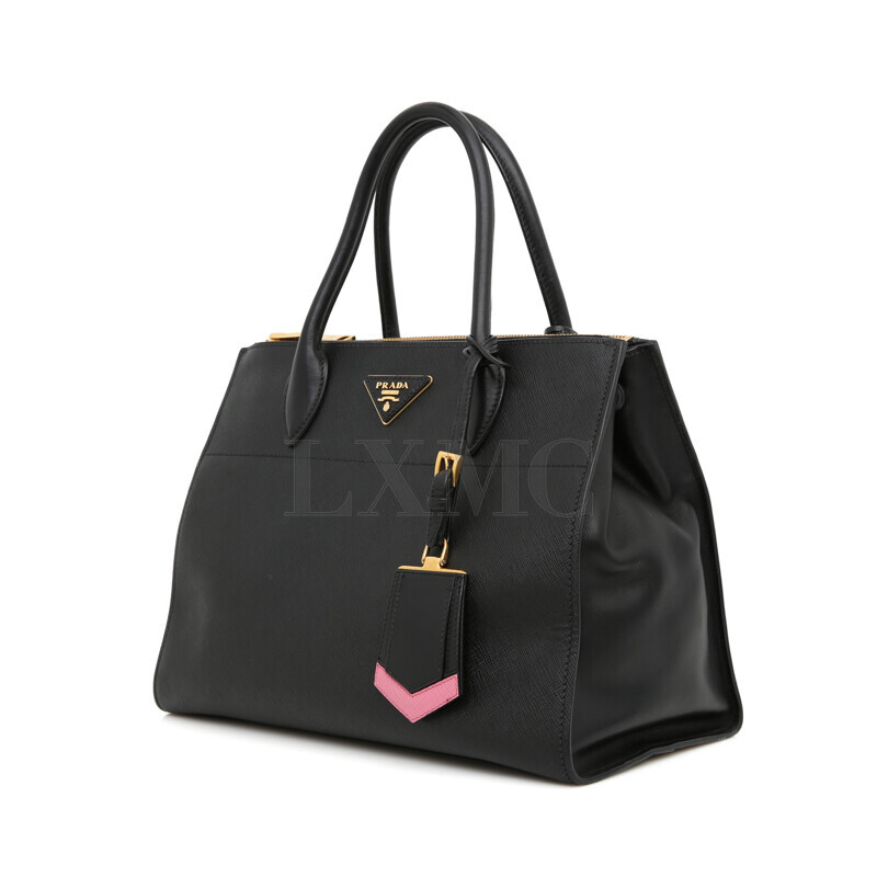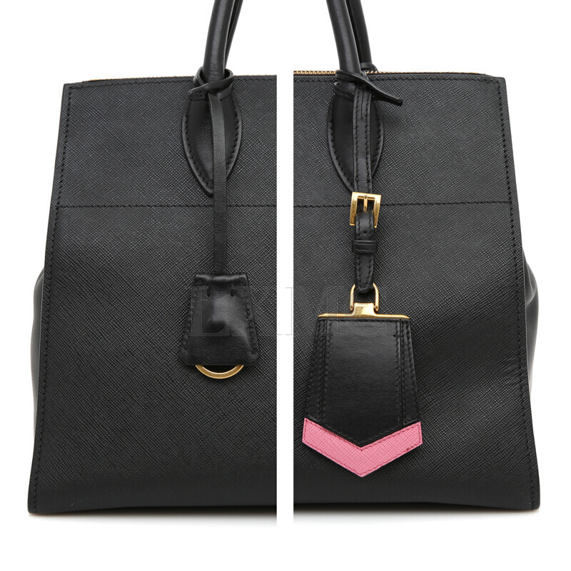 프라다 1BA102 패러다임 사피아노 투톤 블랙 탑핸들 숄더 토트백.