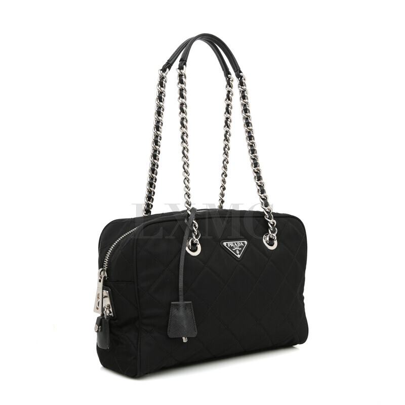 프라다 블랙 나일론 포코노 퀼팅 체인 숄더백 1BB903 보스턴백.