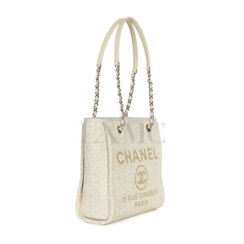 샤넬 쇼라인 아이보리 도빌 쇼퍼백 체인백 숄더 트위드 금장 체인토트.