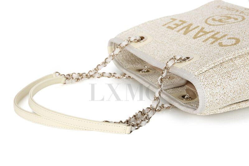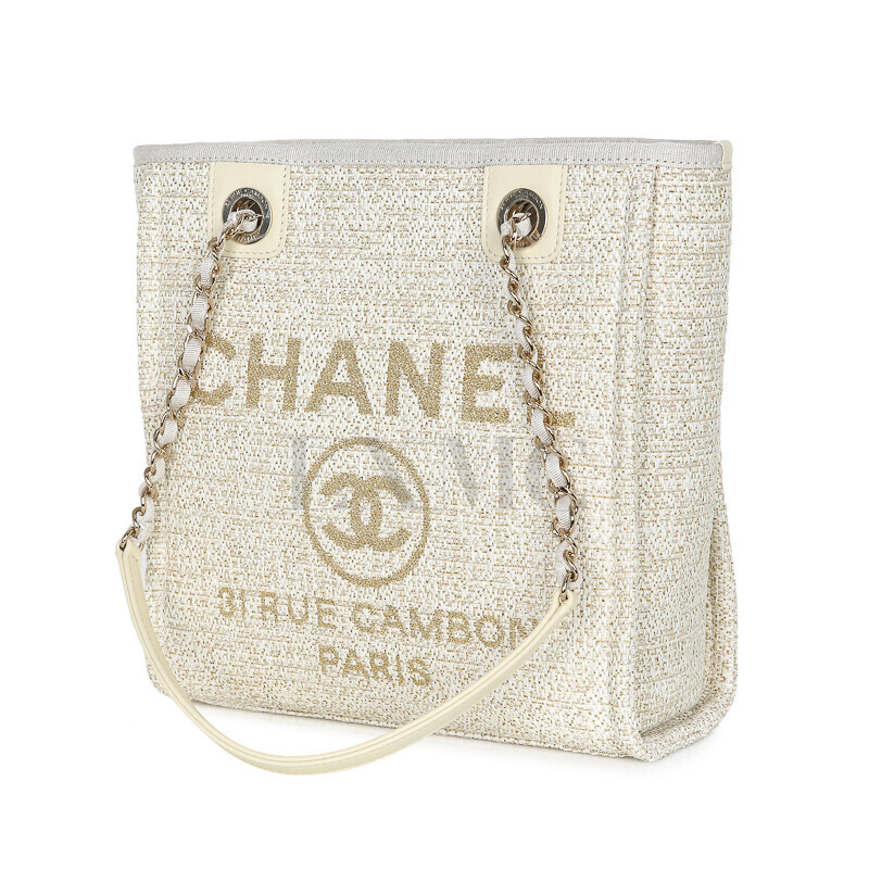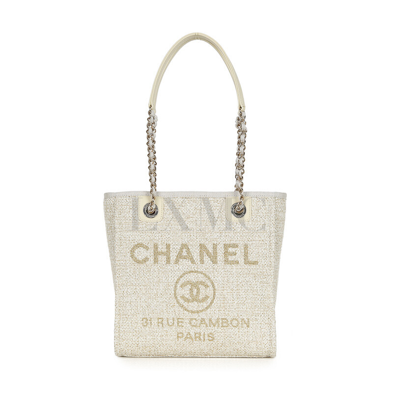 샤넬 쇼라인 아이보리 도빌 쇼퍼백 체인백 숄더 트위드 금장 체인토트.