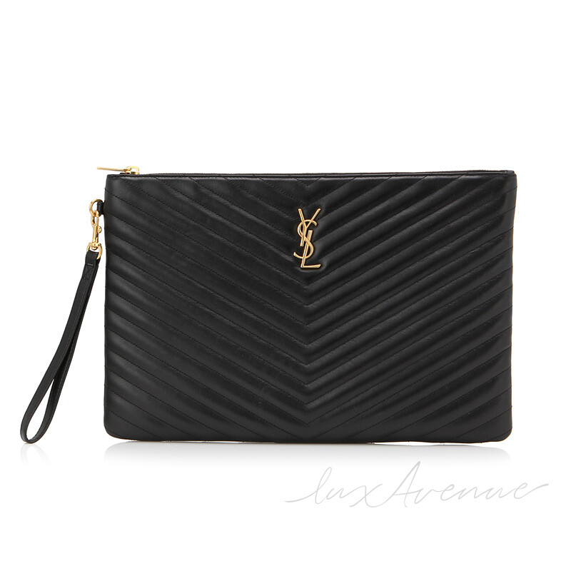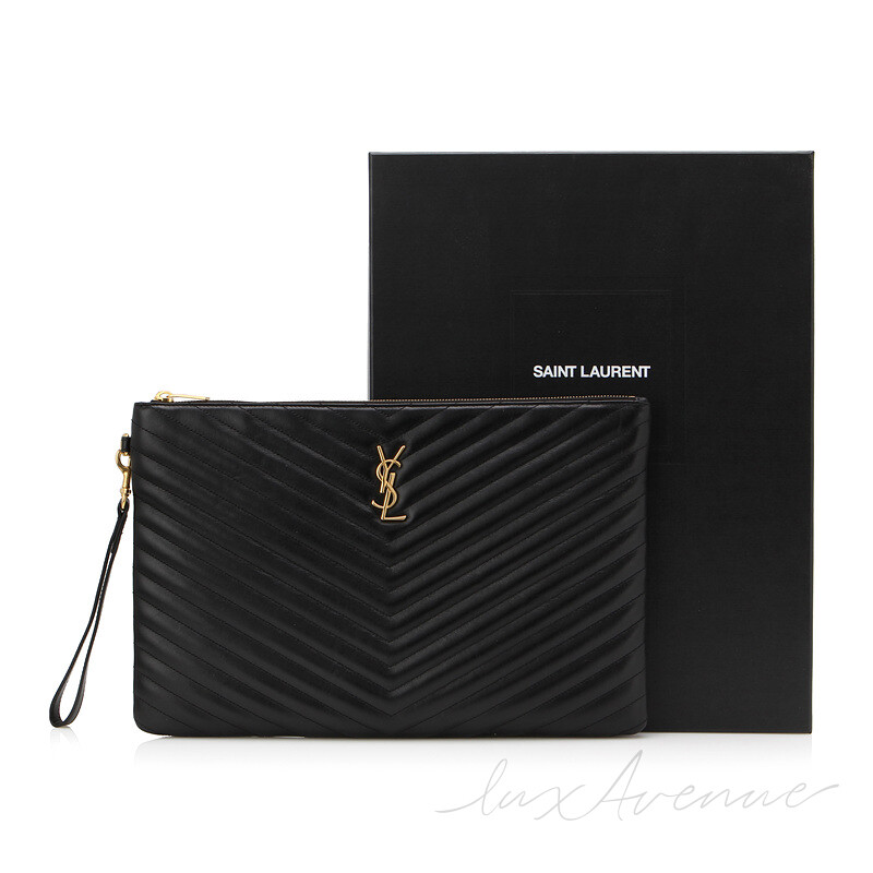 생로랑 모노그램 마틀라세 블랙 금장 클러치 440222
