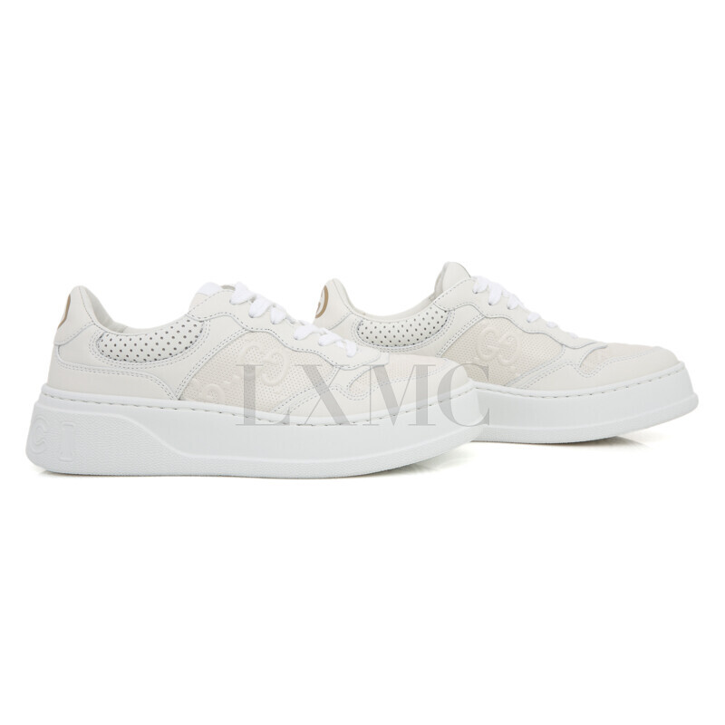 화이트 GG 엠보스 레더 및 부드러운 레더 디테일