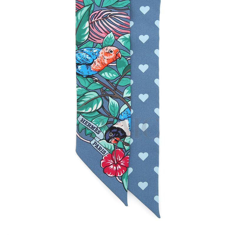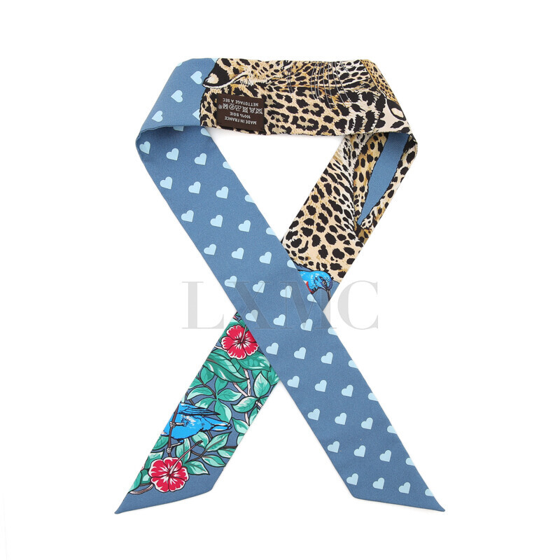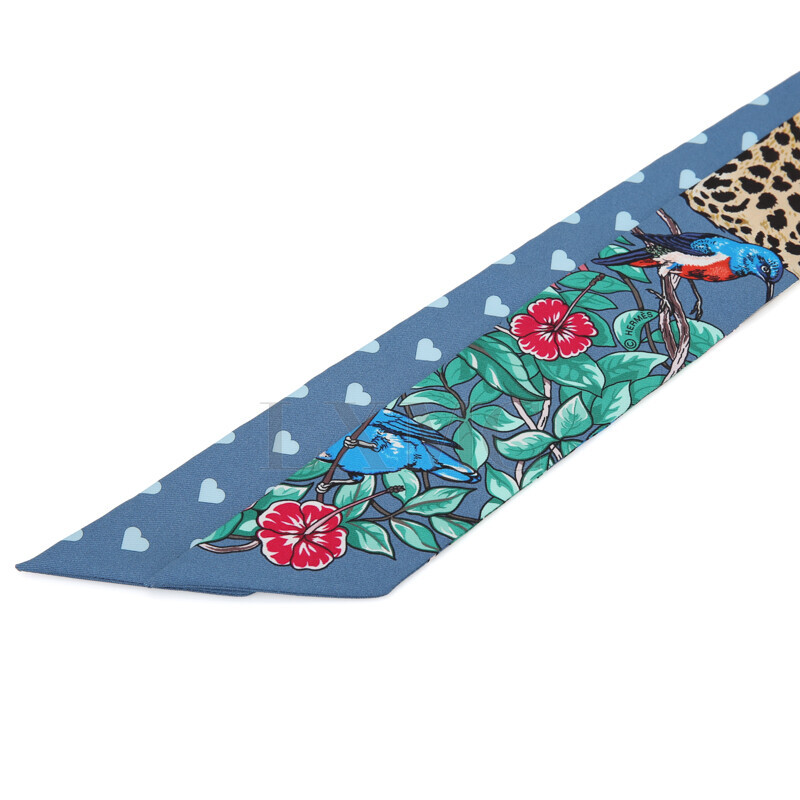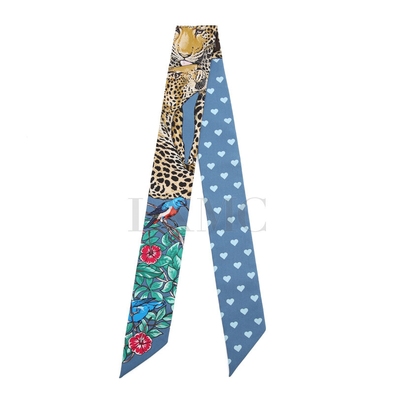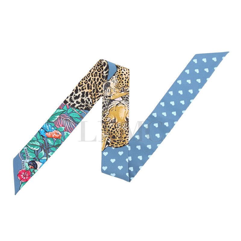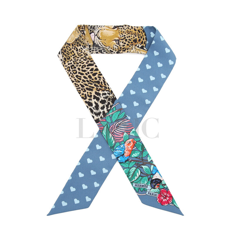 에르메스 실크 트윌리 트윌 하트 레오파드 표범 방도 반다나.