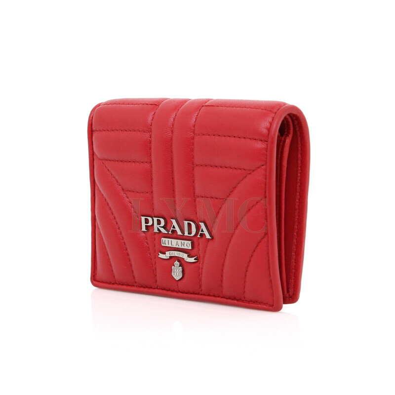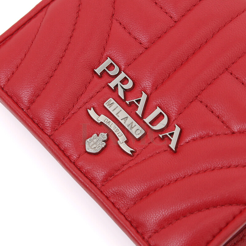 프라다 다이어그램 반지갑 1MV204 레드 실버 지갑.