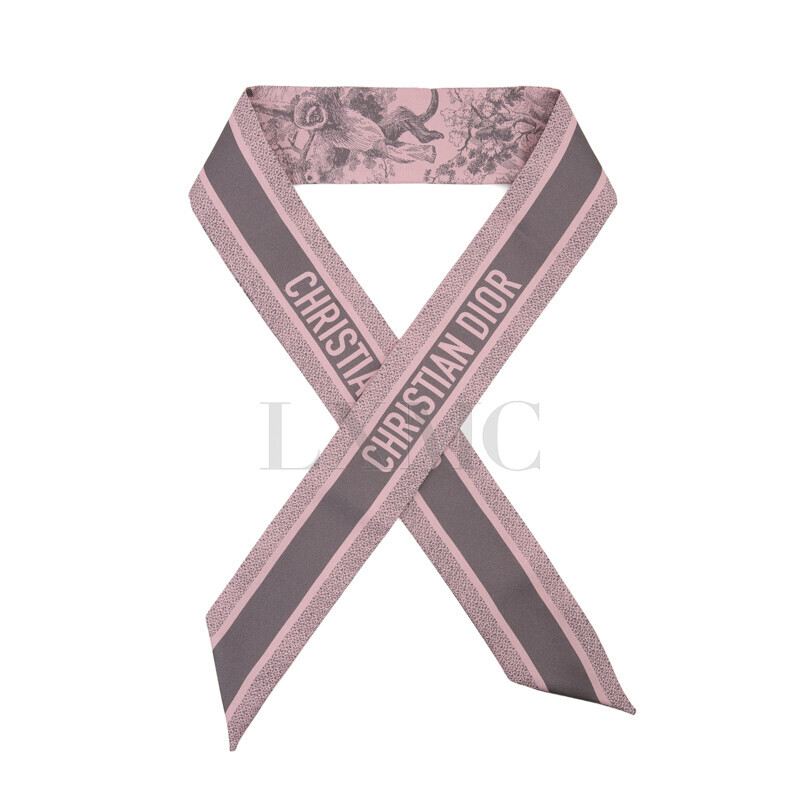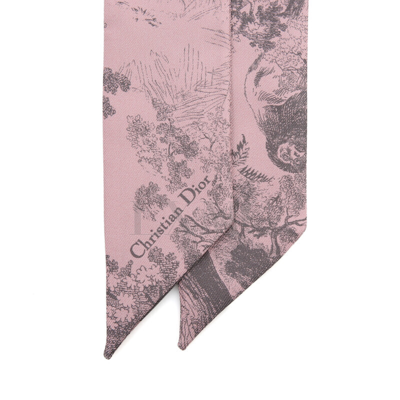 디올 TOILE DE JOUY SAUVAGE 미차 스카프 실크 반다나 핑크 그레이.