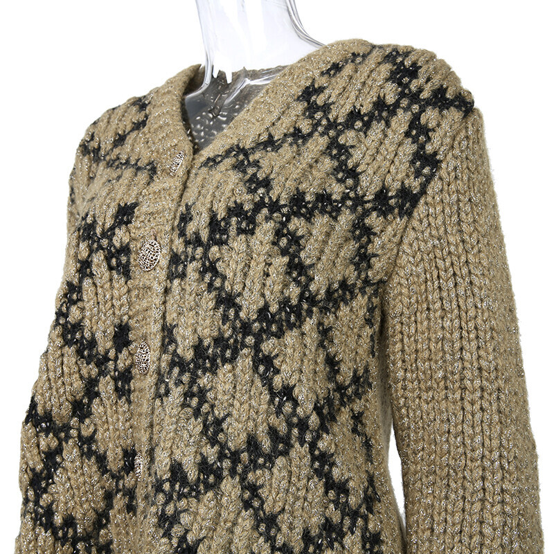 샤넬 골드 베이지 퀼팅 CC 로고 가디건 니트 자켓 P52863.