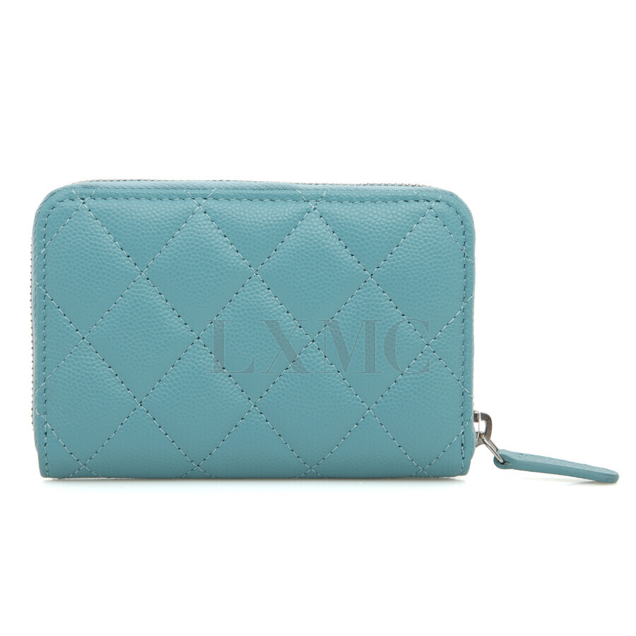 샤넬 클래식 캐비어 카드지갑 터콰이즈 CC 로고 지갑.