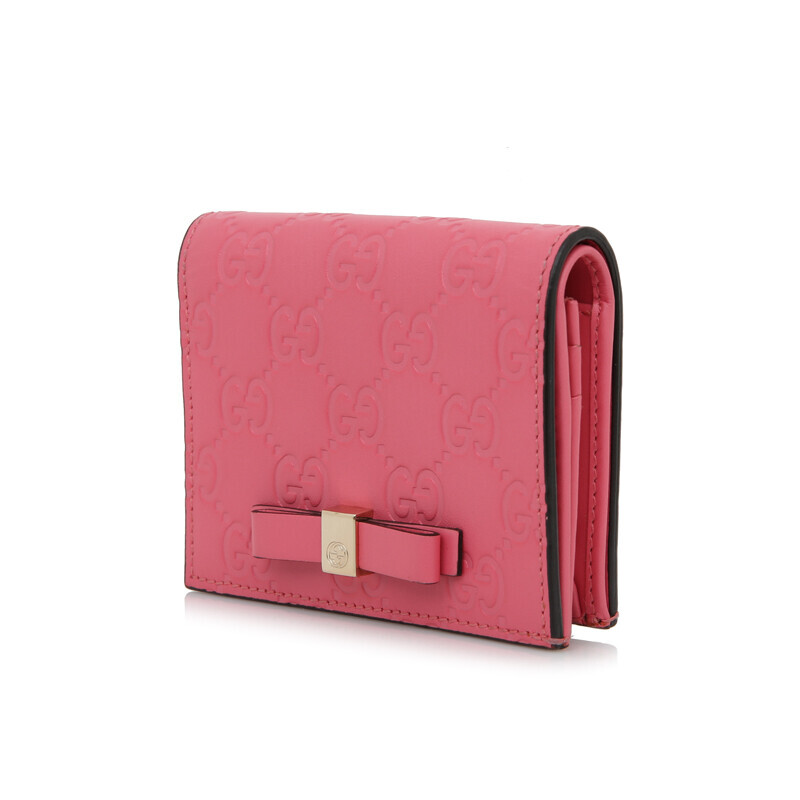 구찌 씨마레더 씨마 보우 컴팩트 반지갑 406924 핑크 리본 지갑.