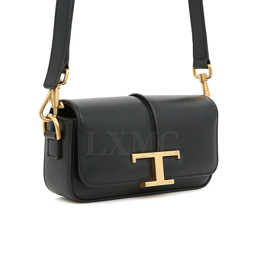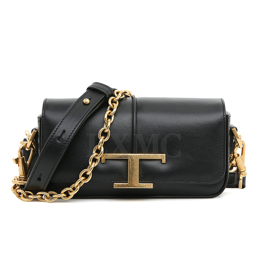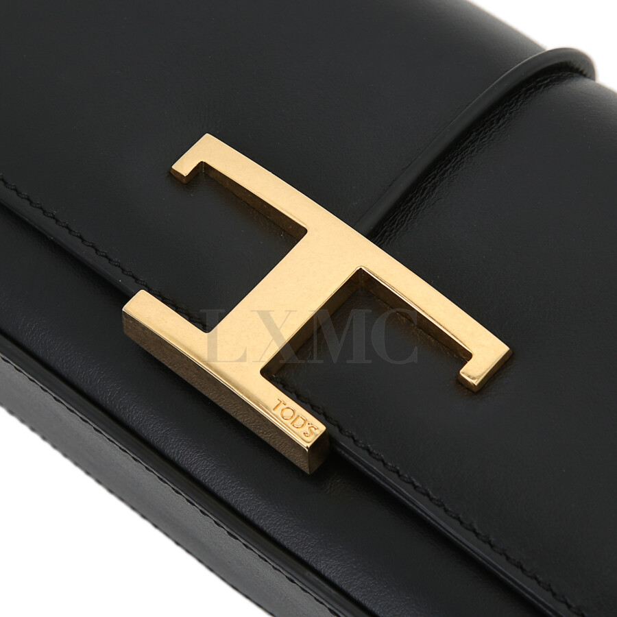 토즈 블랙 골드 T 타임리스 체인 미니 Tracollina 크로스백 플랩