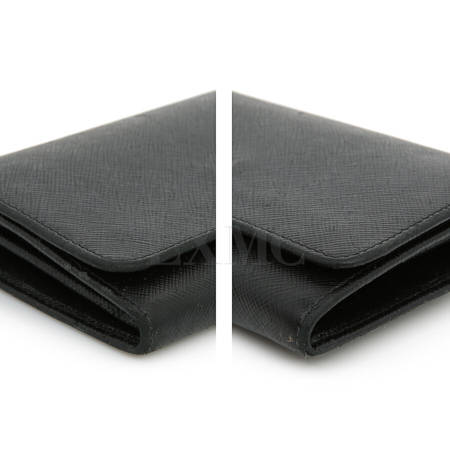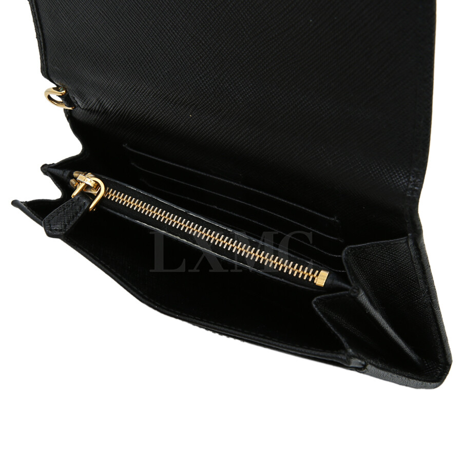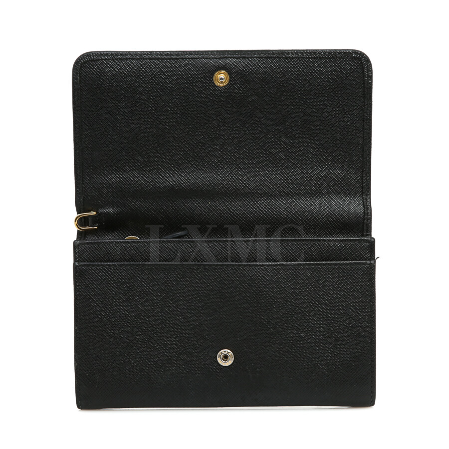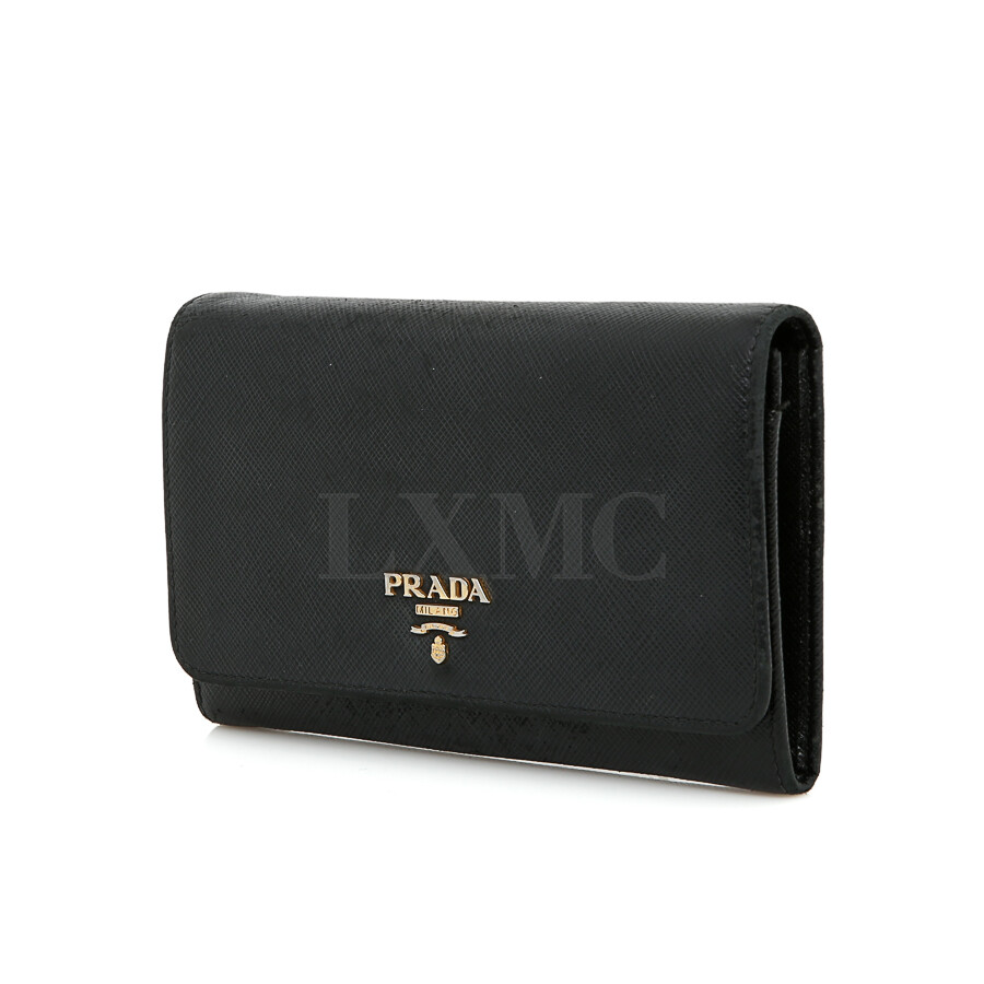 프라다 1M1438 사피아노 메탈 스트랩 중지갑 블랙 포체 카드지갑.