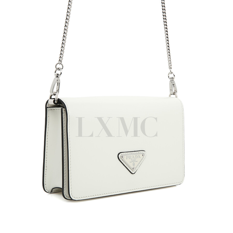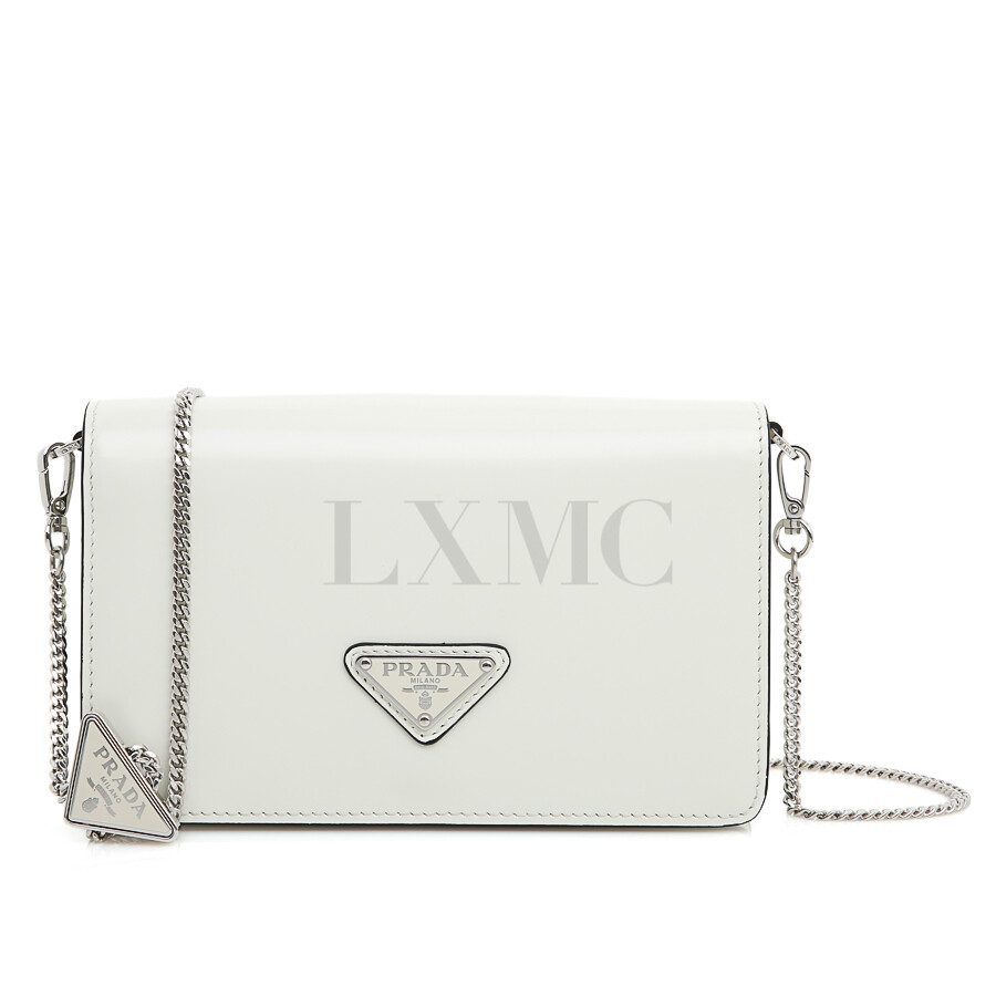 프라다 브러시드 삼각로고 체인 크로스백 1BD307 화이트 숄더백 보증서.