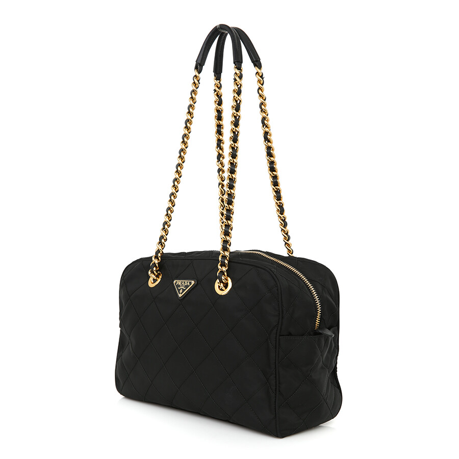 프라다 블랙 리에디션 나일론 퀼팅 체인 숄더 1BB903 보스턴 볼링백.