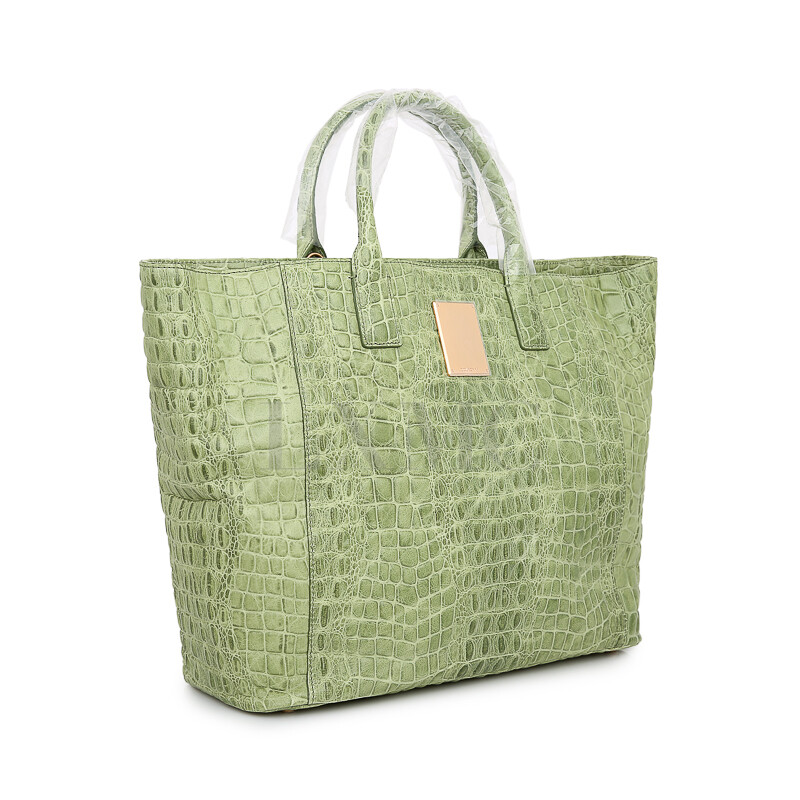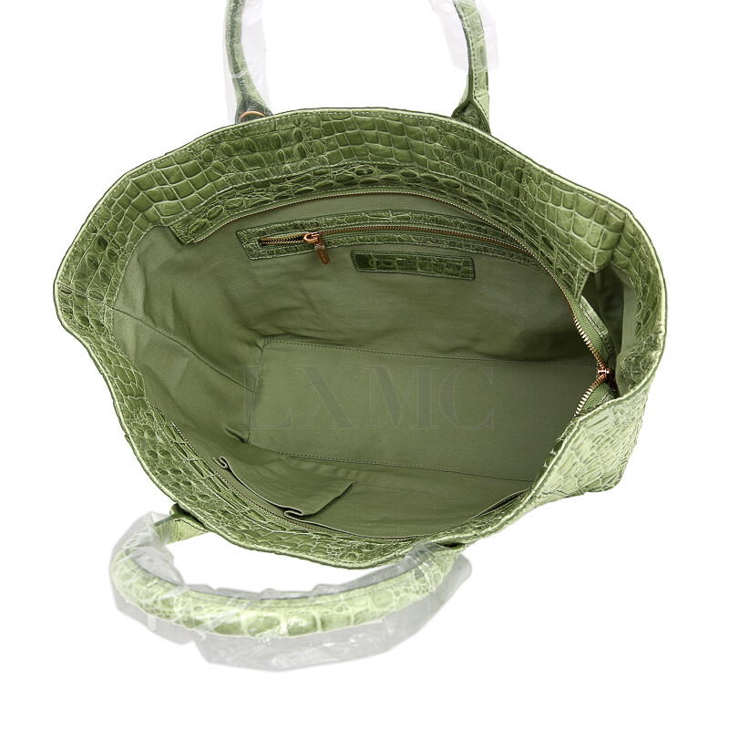 쿠론 클래식 그린 컬러 와니 크로커다일 코코스탬 토트 숄더백.